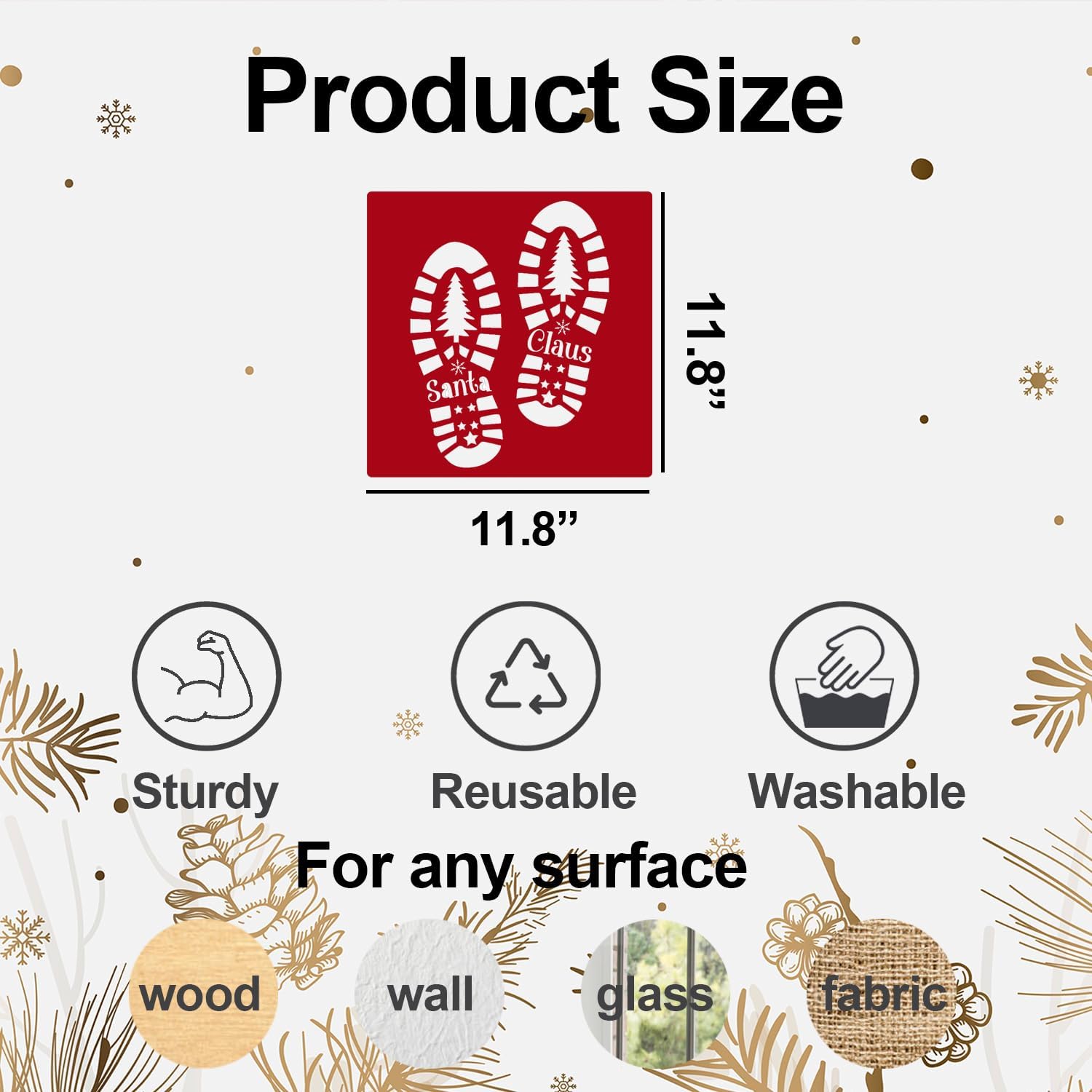 Christmas Stencils 12” Christmas Santa Footprint Stencils Reusable Reindeer Elf Santa Shoe Stencil Holiday Drawing Templates for Floor Porch Wood Sign Decor