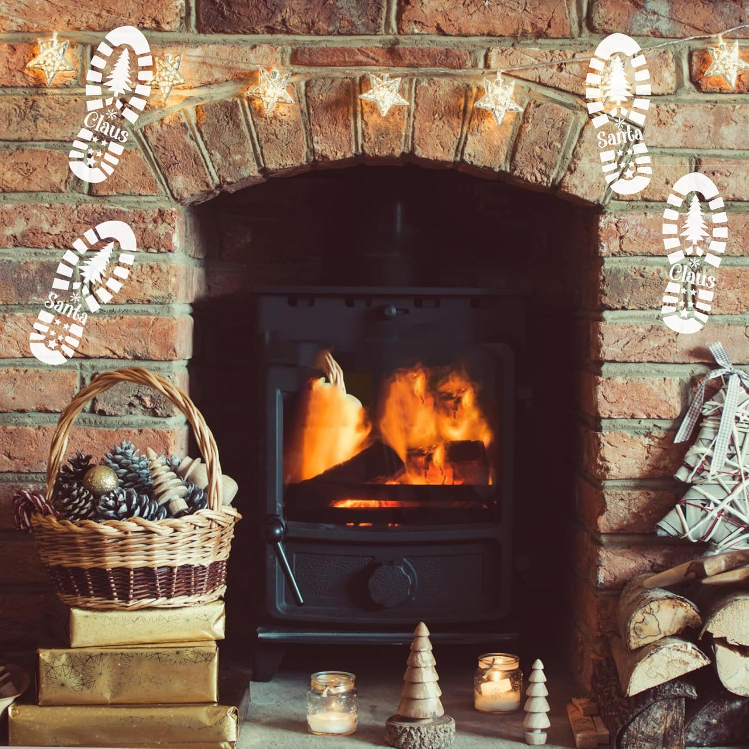 - Santa Footprint Stencil:Add a little Christmas magic for your little one's on Christmas morning with our Santa Boot Print Stencils! Our Santa Boot Stencils include both the left and right boot!Lightly sift some flour, baking soda, powdered sugar or fake snow over the stencil and lift to reveal the boot print left on the floor!
