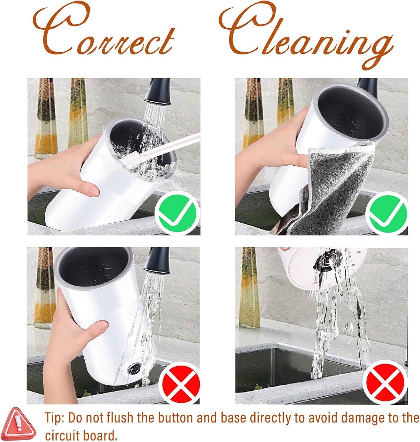 - ☕Easy to Clean: Coffee frother is easy to clean. Reduced risk of milk splatter compared to hand-held bubbler. Tips: Do not clean the bottom with water, wipe it with a rag, and do not put it in the dishwasher, in case of affecting the use of the function.