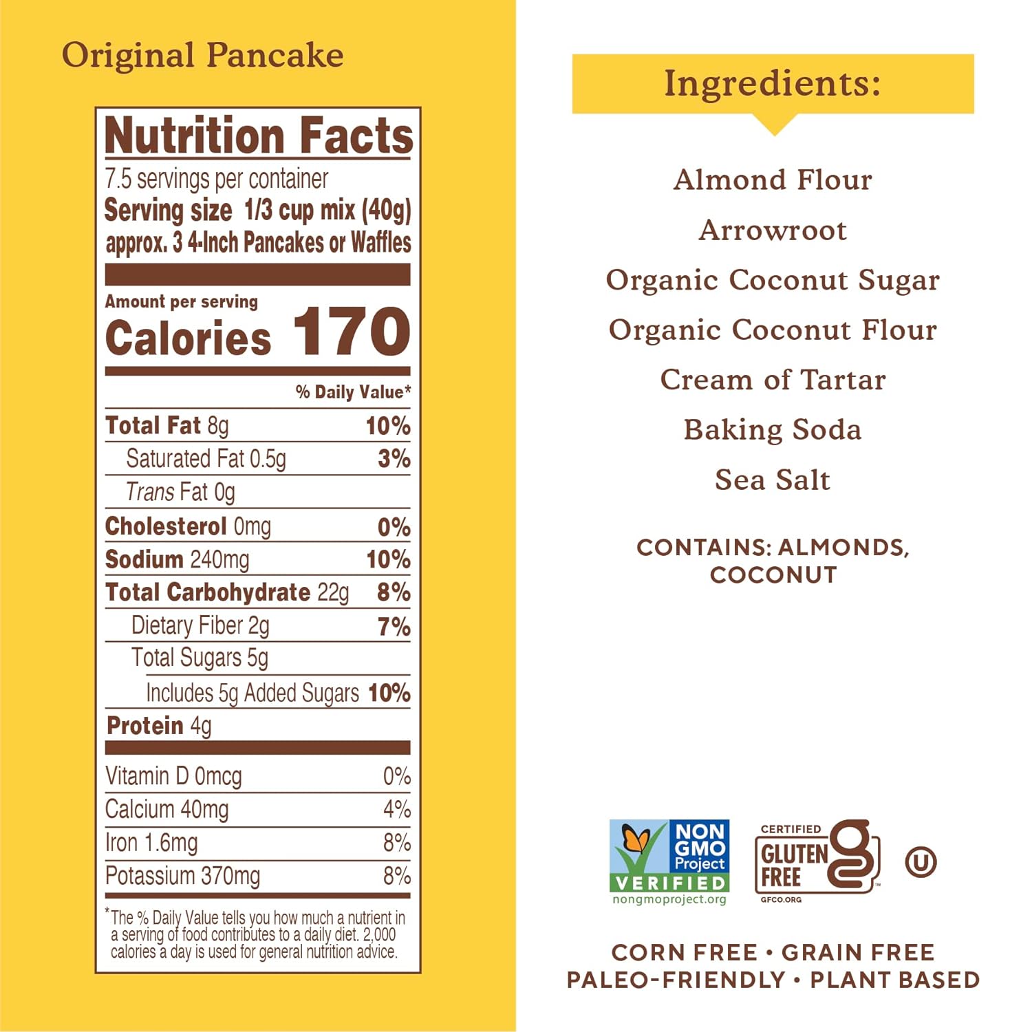 - Certified Gluten free, Non-GMO, Grain Free, Corn Free, Paleo Friendly, Plant Based