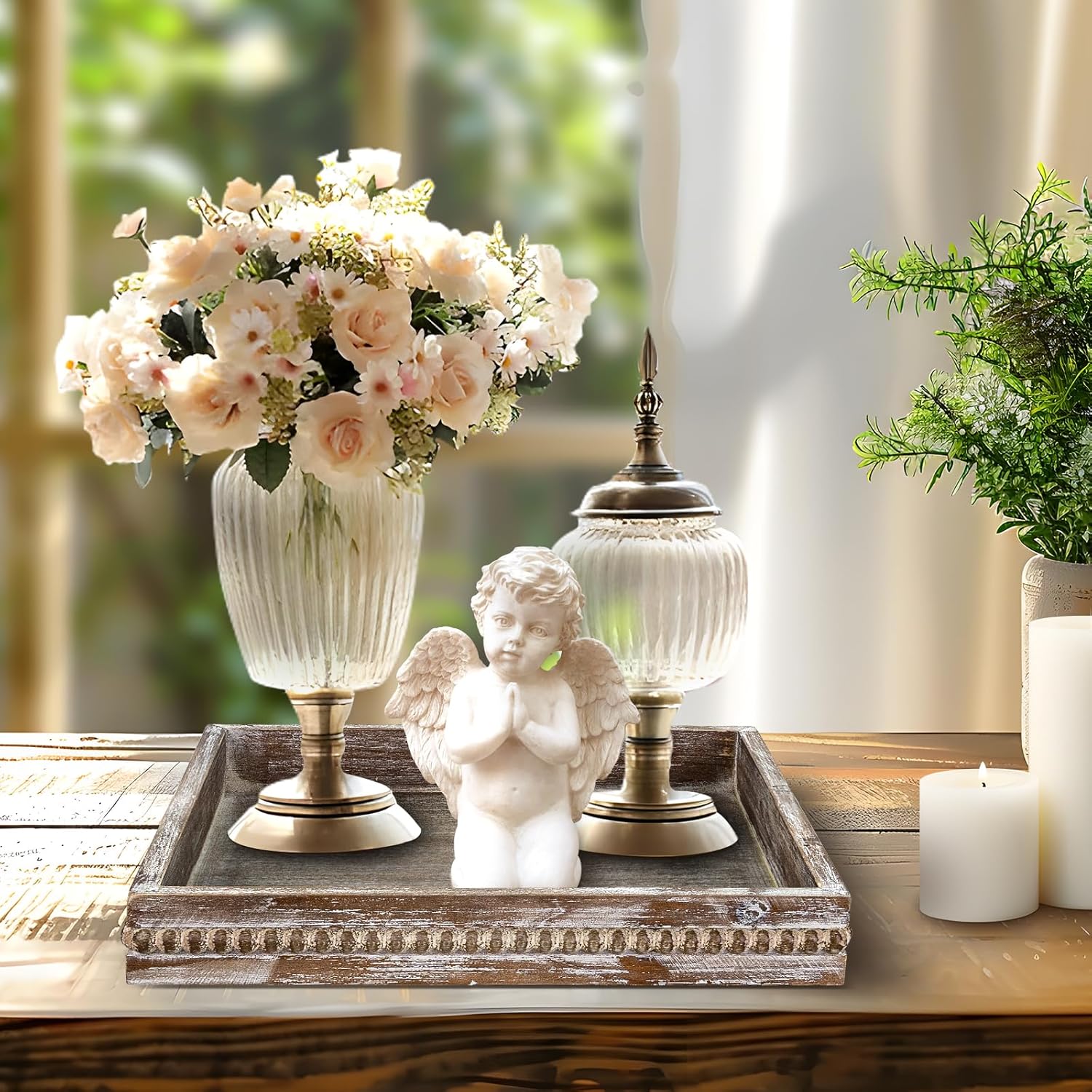 - [Beautiful Decoration]: If you want to dress up your dining room, this versatile wooden tray must be the best choice for your table centerpiece, add your favorite mini decorative items, you can get a stunning centerpiece tray display!