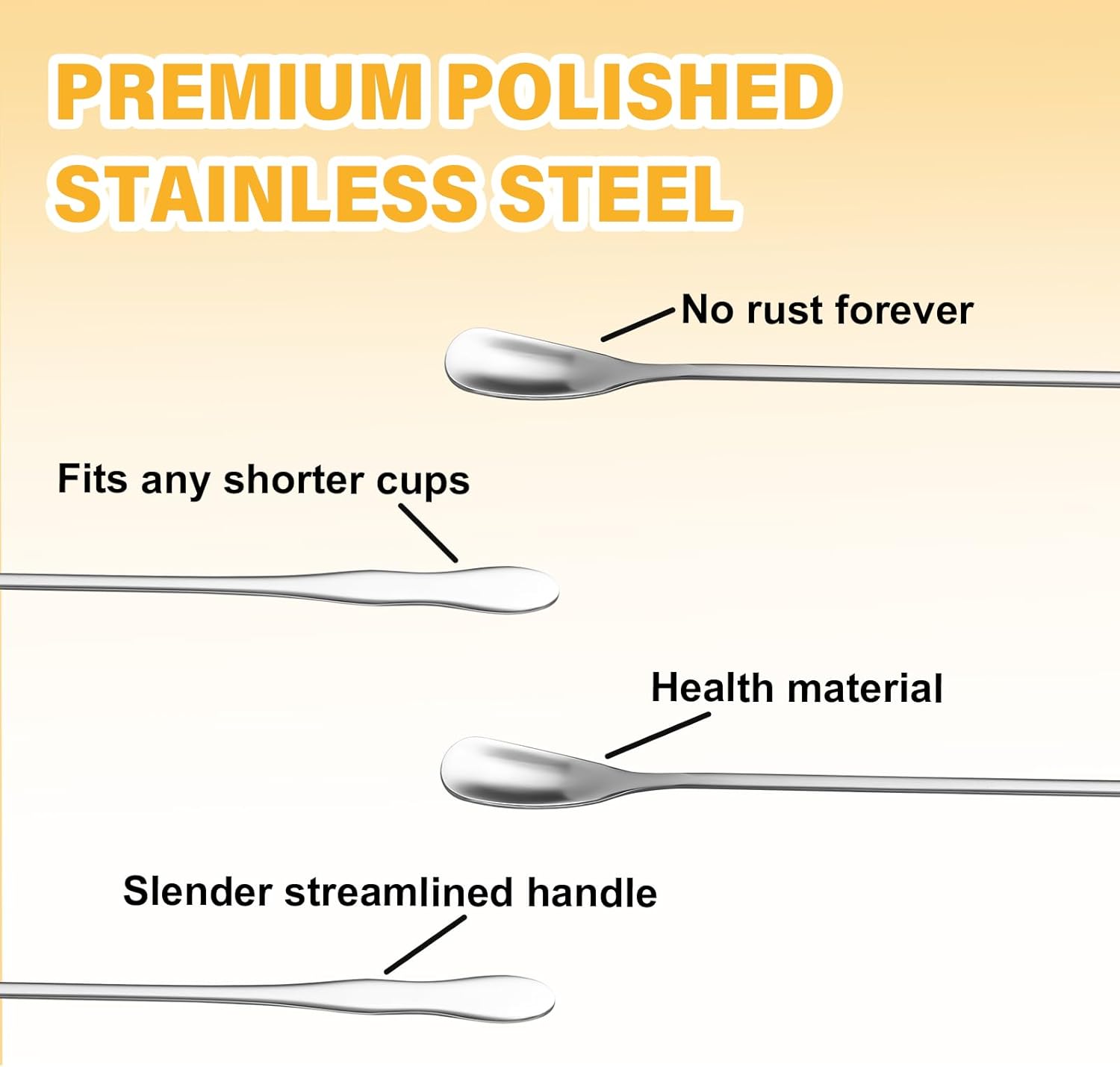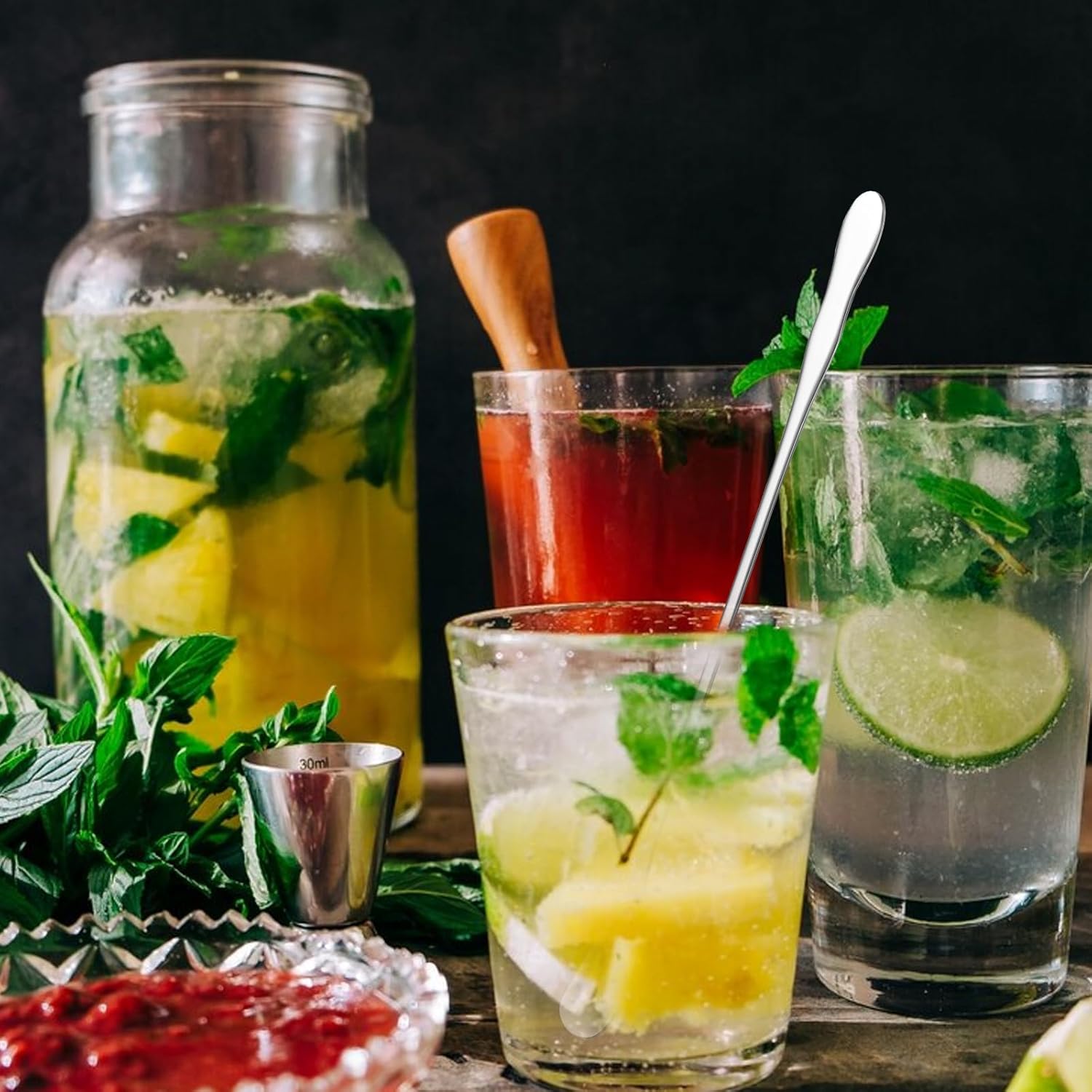 - 【Widely Used】 Ideal for both hot and cold beverages, these long-handled spoons excel in mixing cocktails, tea, iced coffee, milkshakes, beer, and smoothies, making them a must-have for any home bar or kitchen.