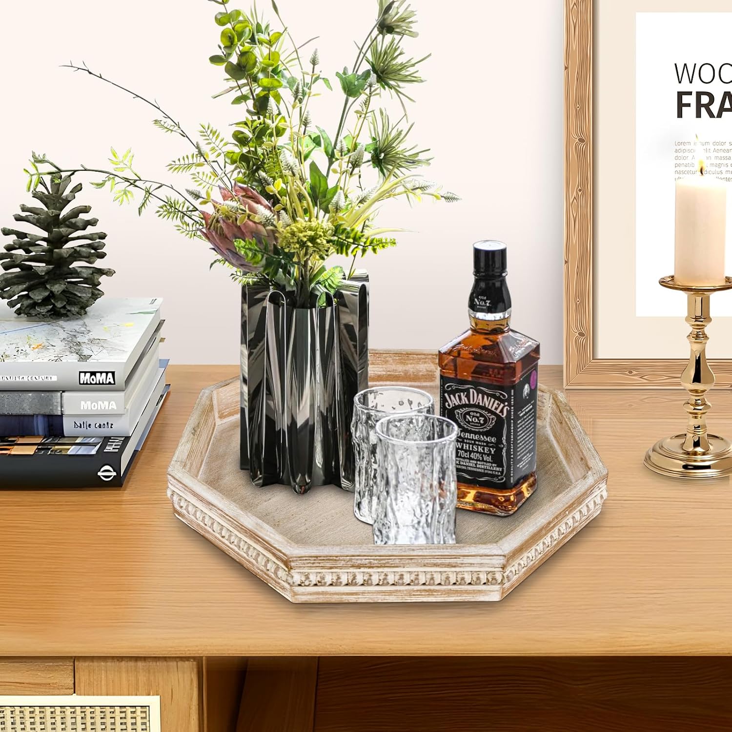 - [Vintage wooden tray]: The wooden tray has a unique design, and the tray is surrounded by resin beads, which is more textured than plastic beads. The surface is polished to retain the wood grain, and matched with White Washed color, it has a natural and vintage feel. Whether it is to greet friends or relatives, this wooden tray can show your elegant taste and bring a warm and fashionable atmosphere to the home environment.