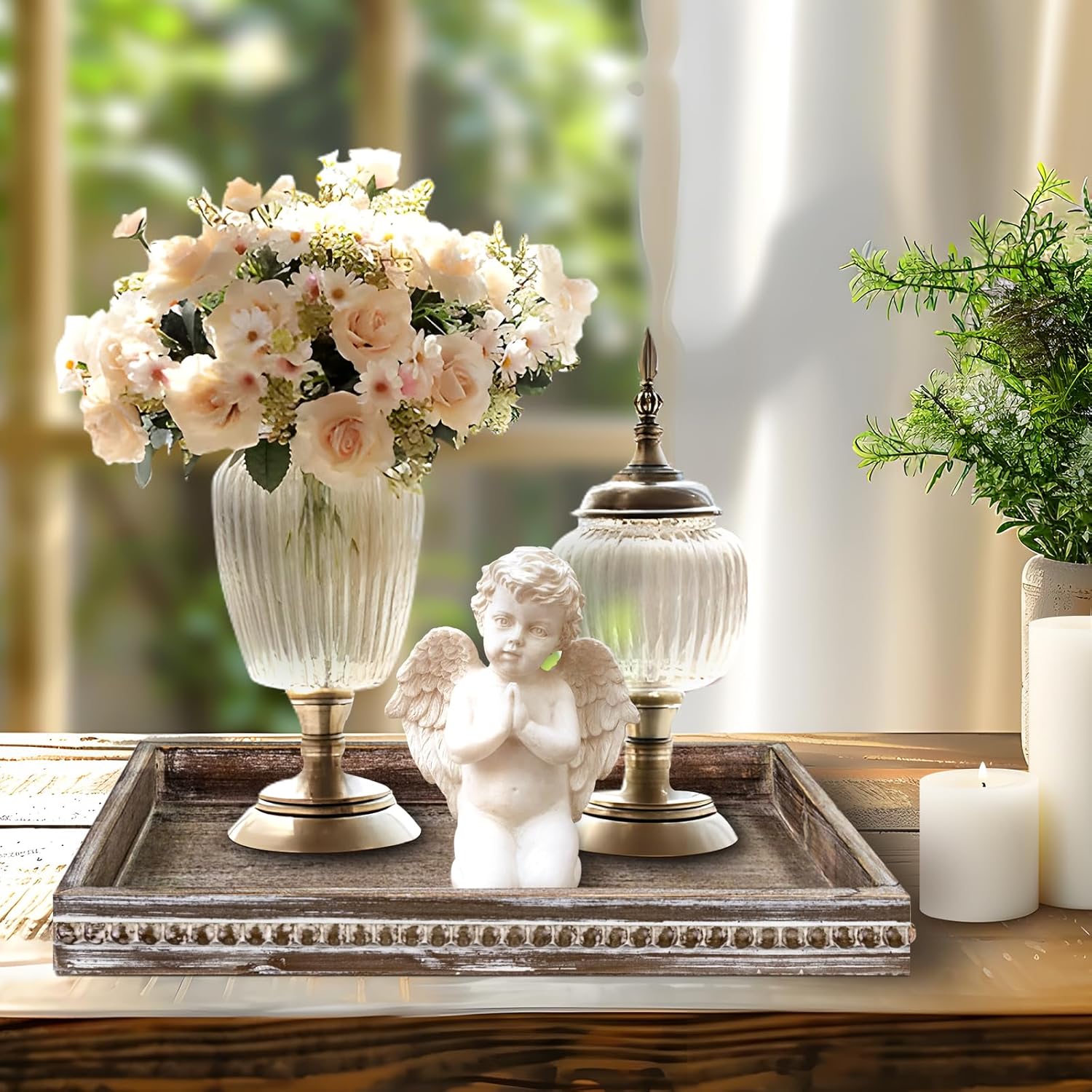 - [Widely used scenarios]: Our wooden tray offers a vintage finish that complements any decor style. Perfect as a candle tray, tea tray, or coffee table accessory, this counter tray fits beautifully on shelves and kitchen counters.
