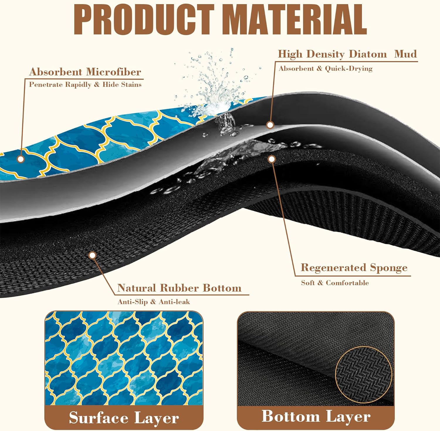 - 【Absorbent & Quick-Drying】The surface of this coffee mat is made of absorbent microfiber and the middle is made of composite sponge, which can absorb up to 4 times its weight in water and has a strong water absorption capacity. The high-density design makes it fast drying and can quickly absorb spilled liquids to keep your counter or desktop dry