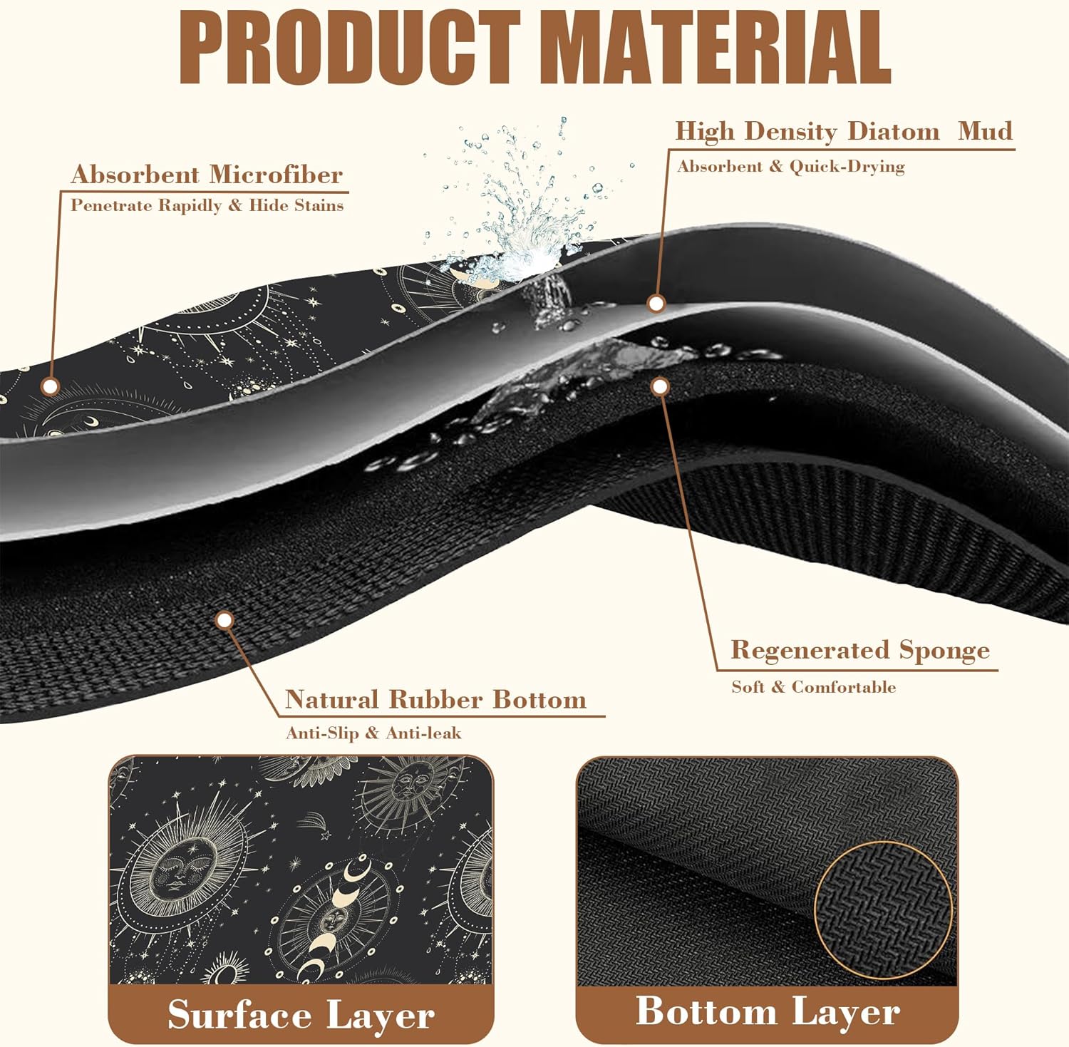 Moon Sun Zodiac Coffee Mat Absorbent Astrology Dish Drying Mat for Kitchen Counter Hide Stain Rubber Backed Coffee Bar Accessories Fit Under Espresso Machine, 11.8 x 19.7 Inch