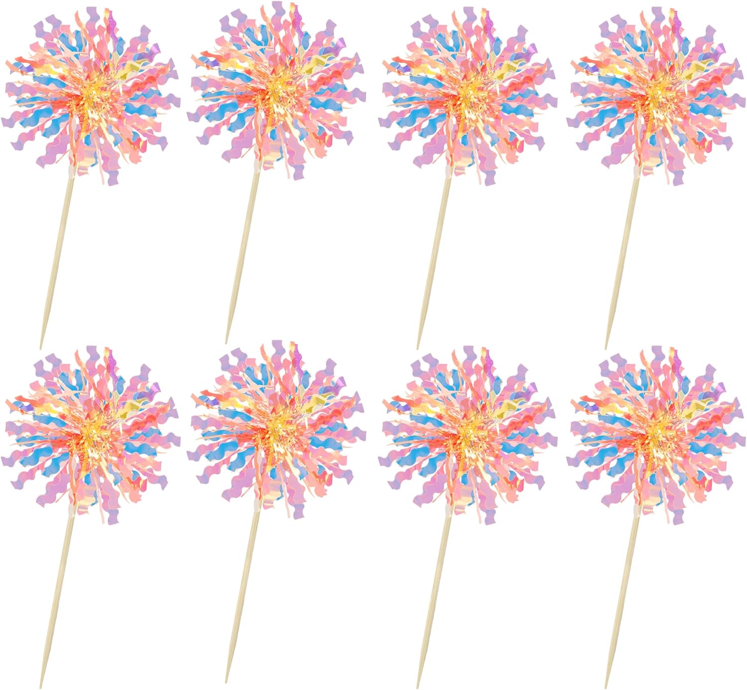 - 【NO Required】: 30Pcs Foil Firework cupcake toppers can put in the cake directly! These 30Pcs Foil Firework Cupcake toppers save your time and super easy to use. You can easily dress up your birthday theme cakes, yes! but don't stop there, put them into desserts, cookies, fruit pieces, appetizers, muffins and so much more!