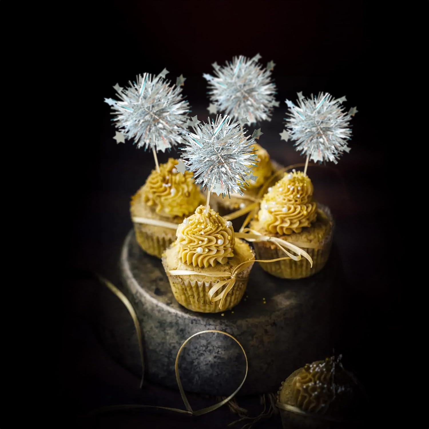 - 【NO Required】: 30Pcs Foil Firework cupcake toppers can put in the cake directly! These 30Pcs Foil Firework Cupcake toppers save your time and super easy to use. You can easily dress up your birthday theme cakes, yes! but don't stop there, put them into desserts, cookies, fruit pieces, appetizers, muffins and so much more!