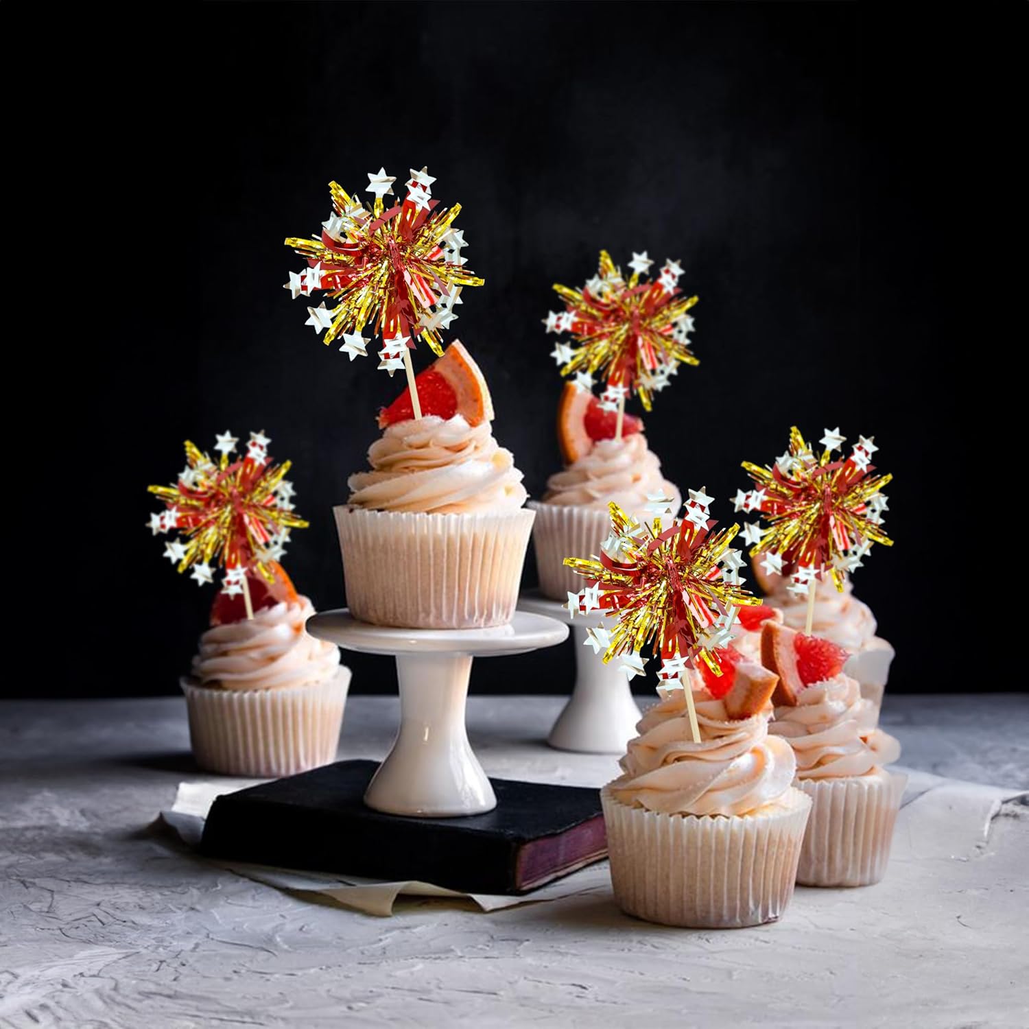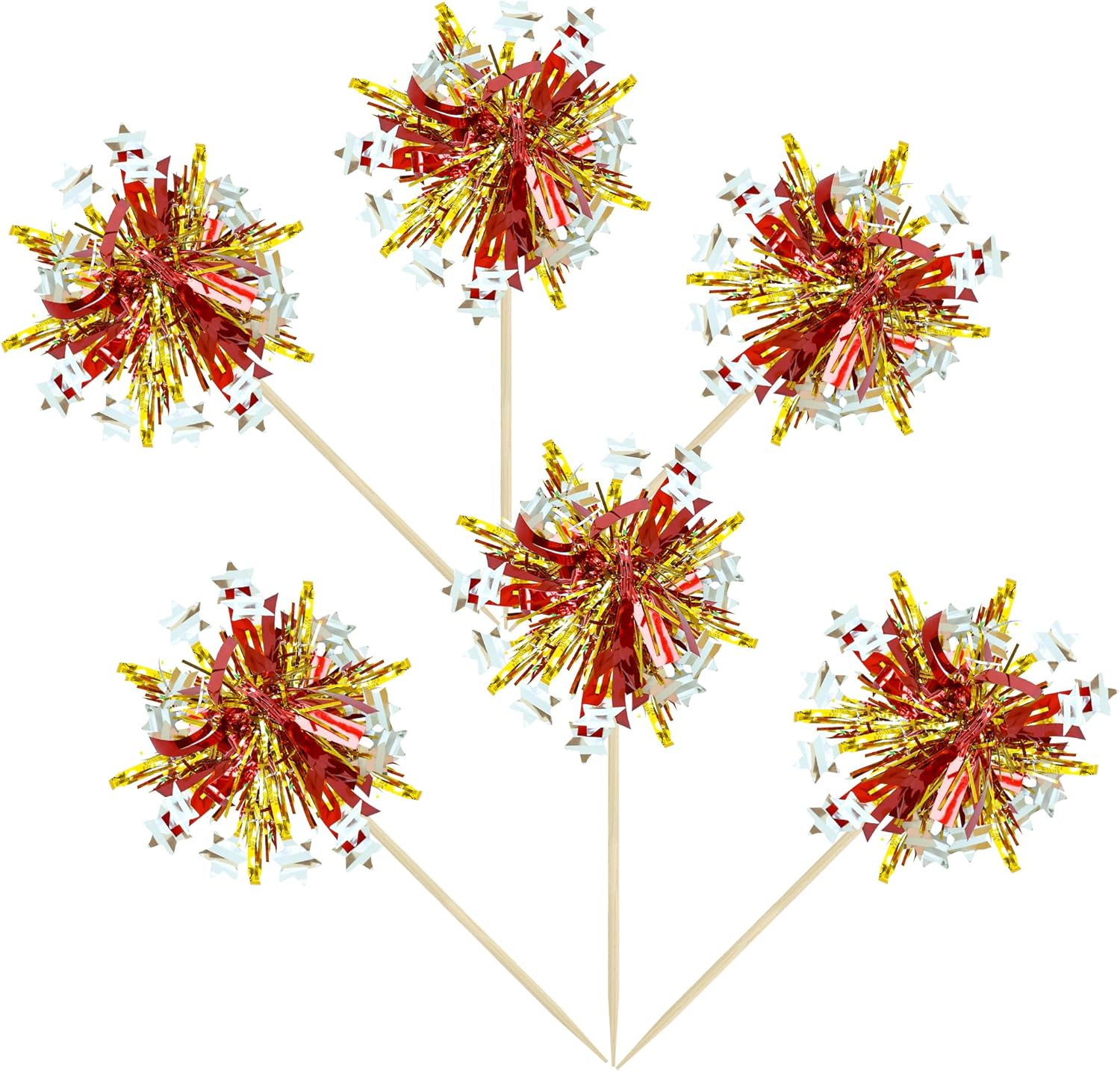 - 【NO Required】: 30Pcs Foil Firework cupcake toppers can put in the cake directly! These 30Pcs Foil Firework Cupcake toppers save your time and super easy to use. You can easily dress up your birthday theme cakes, yes! but don't stop there, put them into desserts, cookies, fruit pieces, appetizers, muffins and so much more!