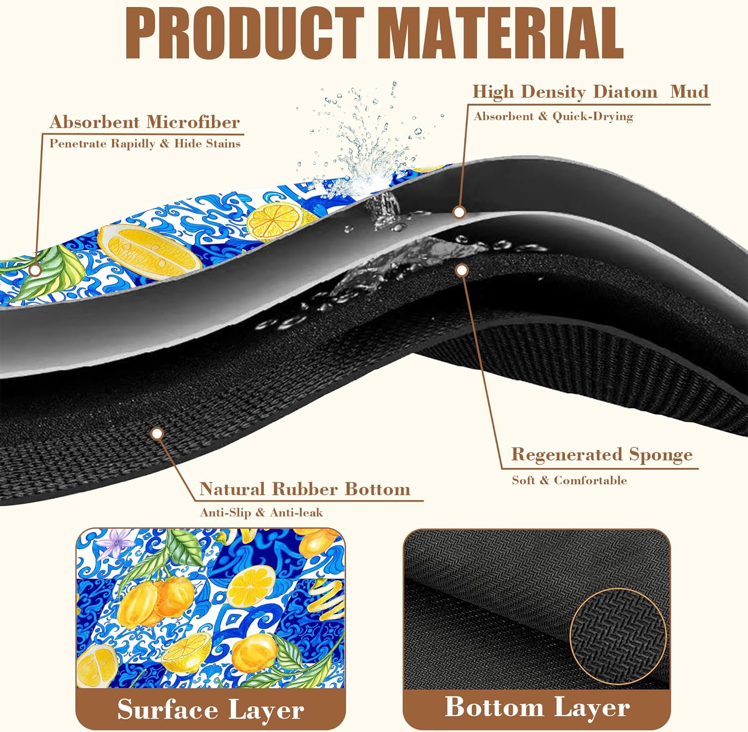 Lemon and Blue Tile Dish Drying Mat for Kitchen Counter Coffee Mat Hide Stain Absorbent Rubber Backed Dish Drainer Rack Pad Espresso Machine Coffee Bar Accessories 15.7 x 23.6 Inch