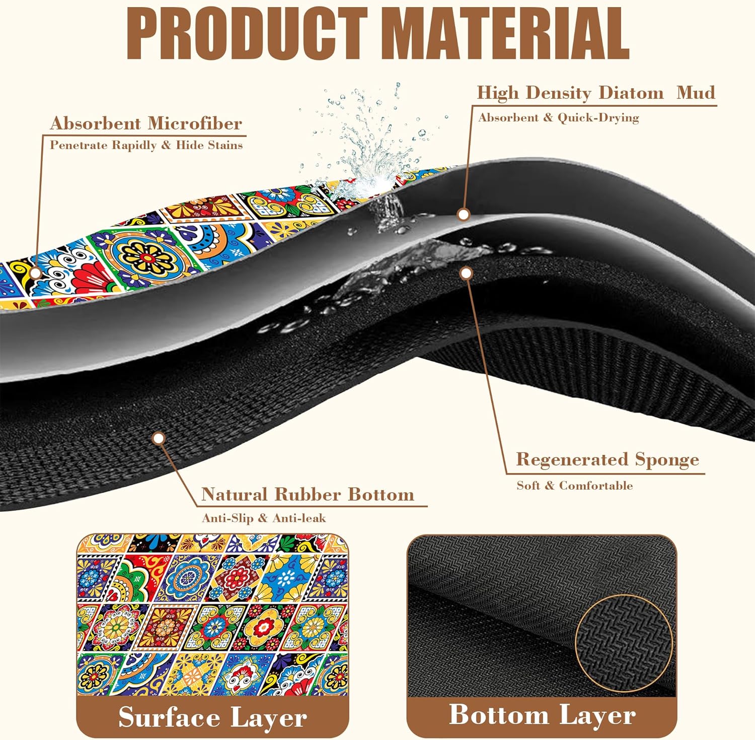 - 【Absorbent & Quick-Drying】The surface of this coffee mat is made of absorbent microfiber and the middle is made of composite sponge, which can absorb up to 4 times its weight in water and has a strong water absorption capacity. The high-density design makes it fast drying and can quickly absorb spilled liquids to keep your counter or desktop dry