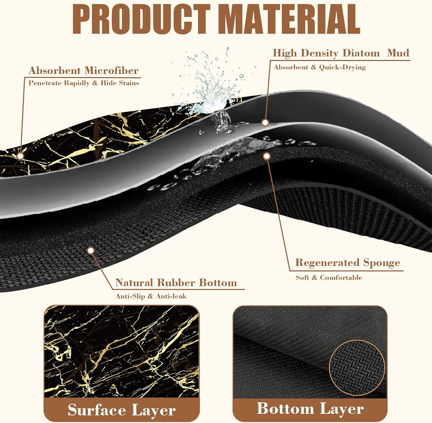 - 【Non-Slip Rubber Base】The bottom of the coffee bar mat has a non-slip textured natural rubber that can firmly grip the tabletop. Just place the coffee machine or cutlery on top, and the non-slip bottom will hold it firmly in place, also preventing liquids from seeping into the tabletop and leaving stains