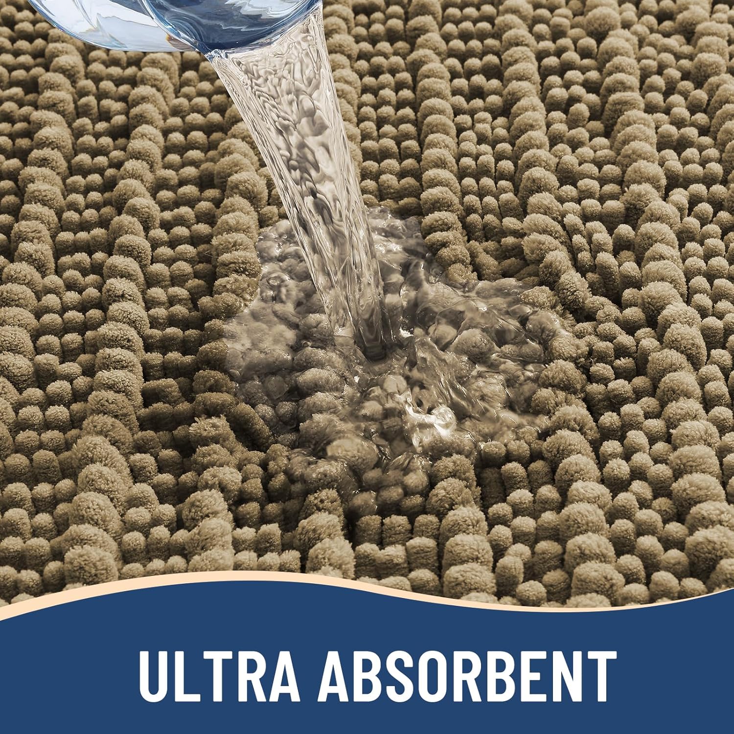 - Quick Water Absorption: Our shaggy bath rugs are made with ultra-soft microfiber shags that efficiently absorb water. The chenille fabric quickly draws in moisture, helping to keep your floors dry when you step out of the bath, shower, or while you're at the sink. The high pile traps moisture, allowing the rug to dry quickly and maintain its cleanliness