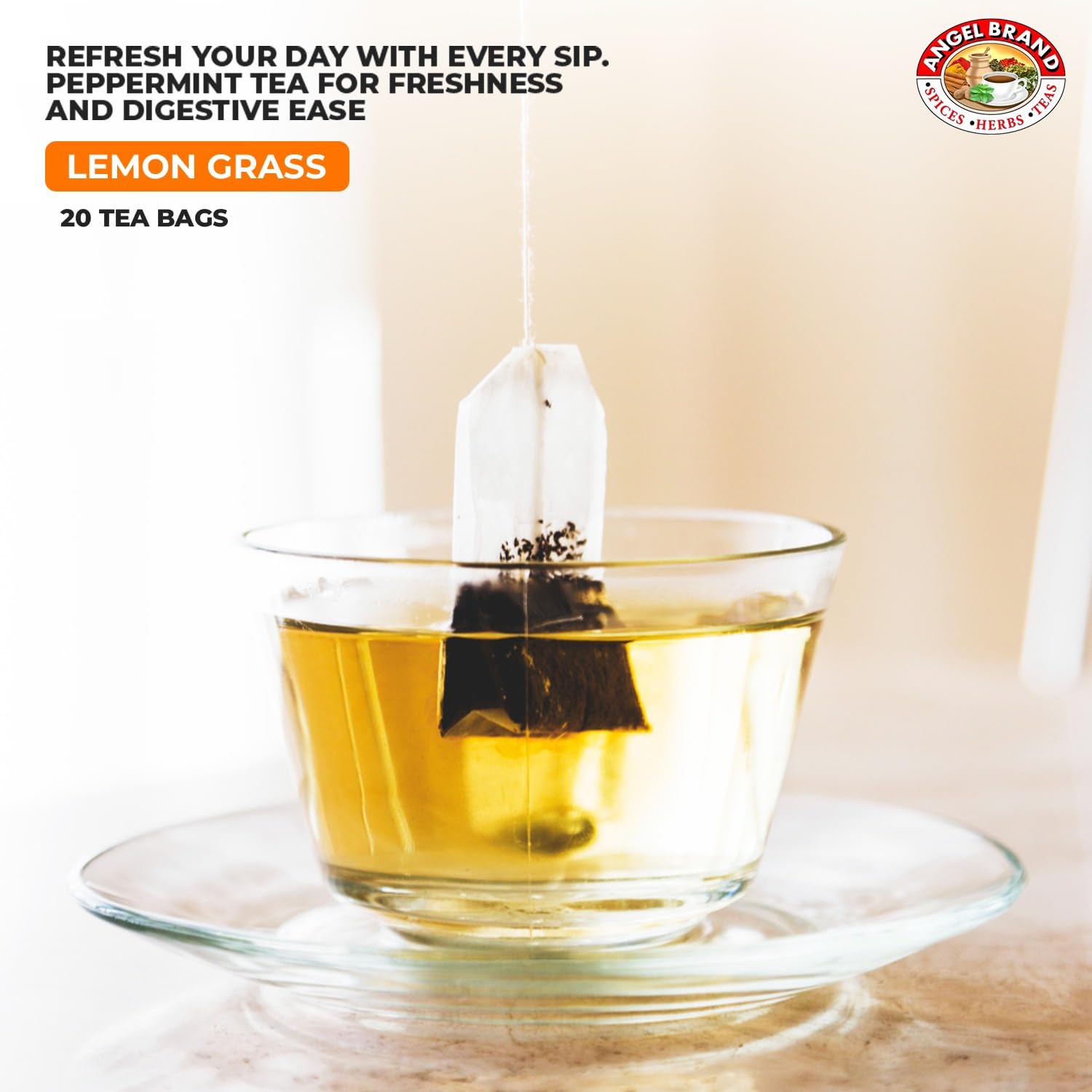 Angel Brand Lemongrass Tea Bags 20 Tea Bags – Pack 3 Lemon Grass Tea with Ginger, Rose Hips, & Clove - Lemongrass Tea Bags with Balanced Flavor, Rich Nutrients & Health Benefits