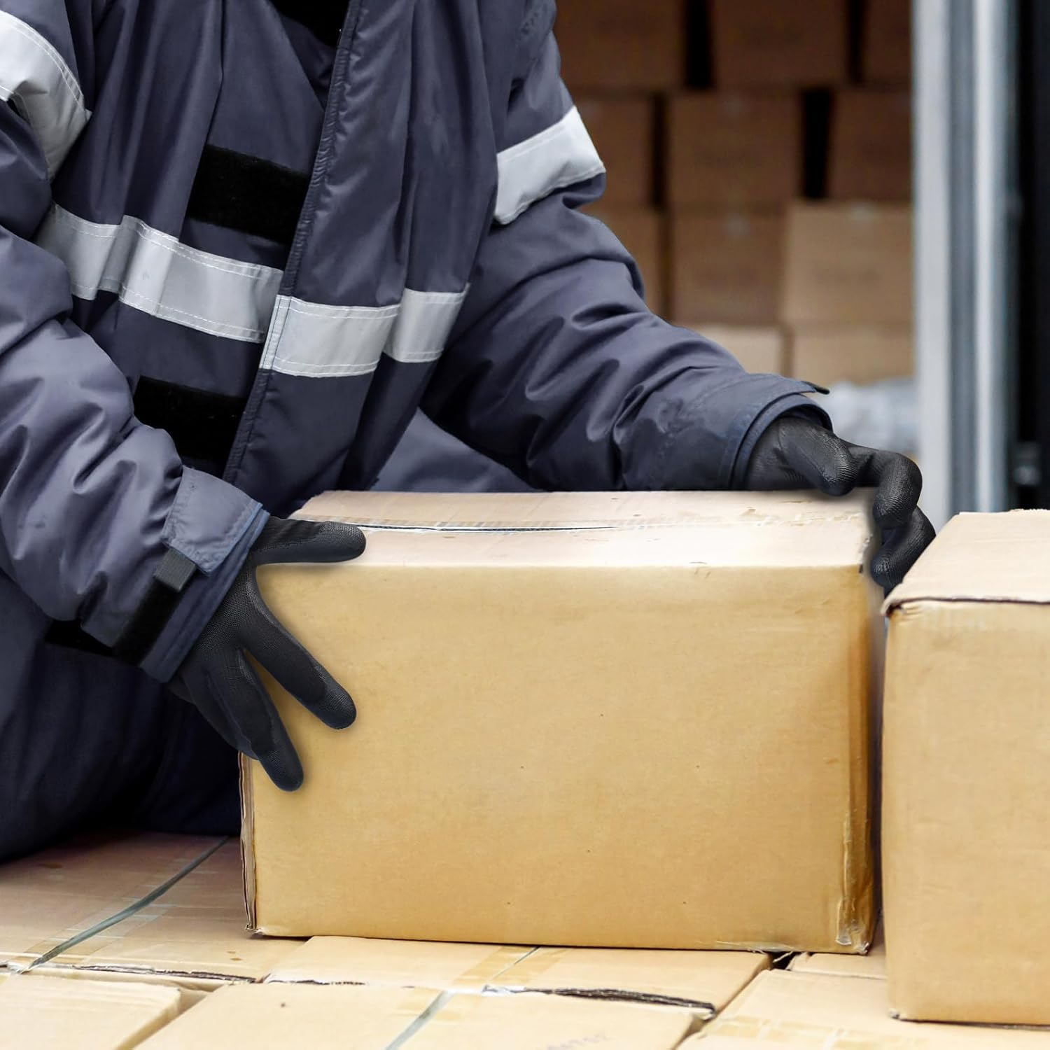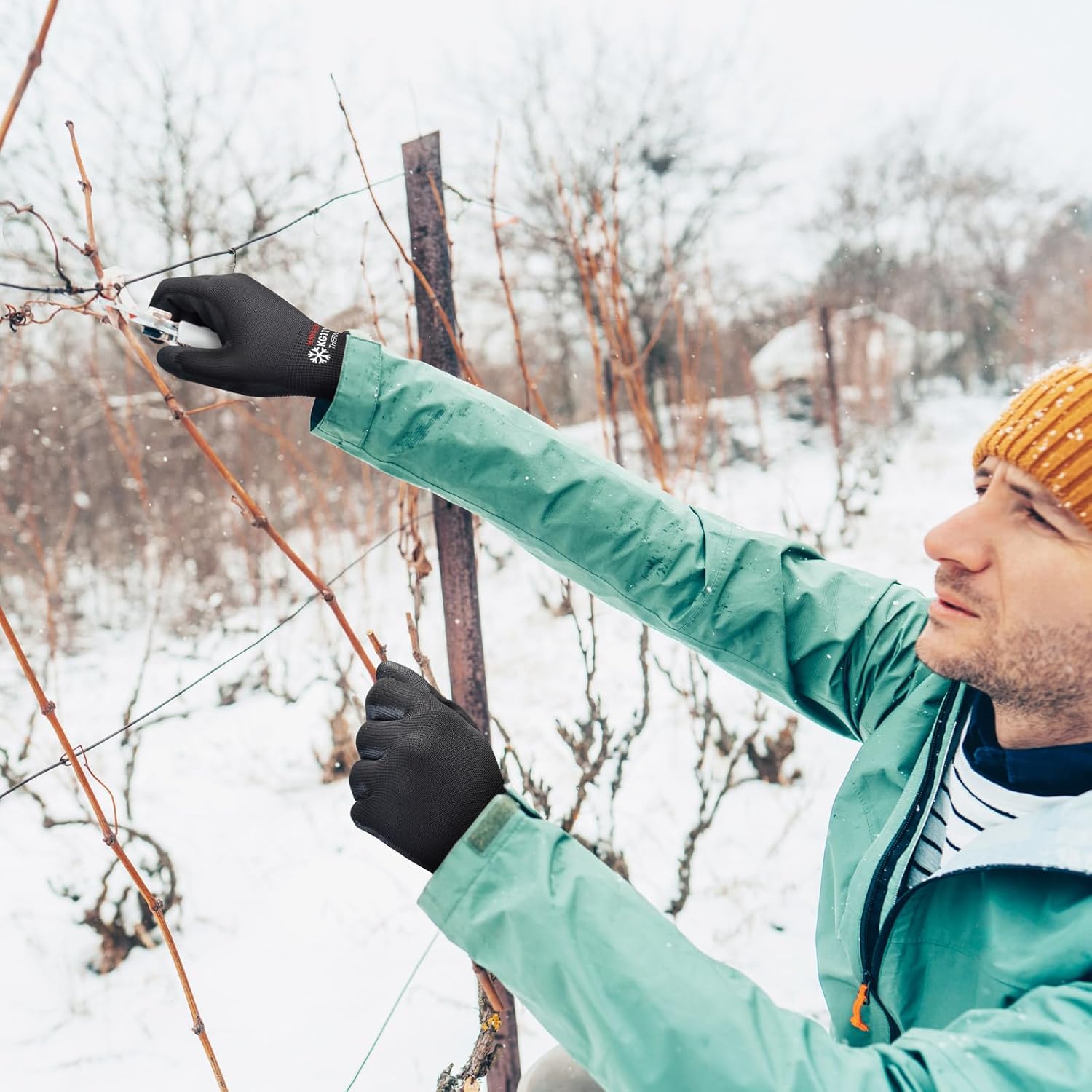 KAYGO Winter Work Gloves for Men and Women, 12 Pairs Thermal Insulated Safety Work Gloves PU Coated, Smooth Grip on Palm & Fingers,Ideal for Freezer Work,Black,S