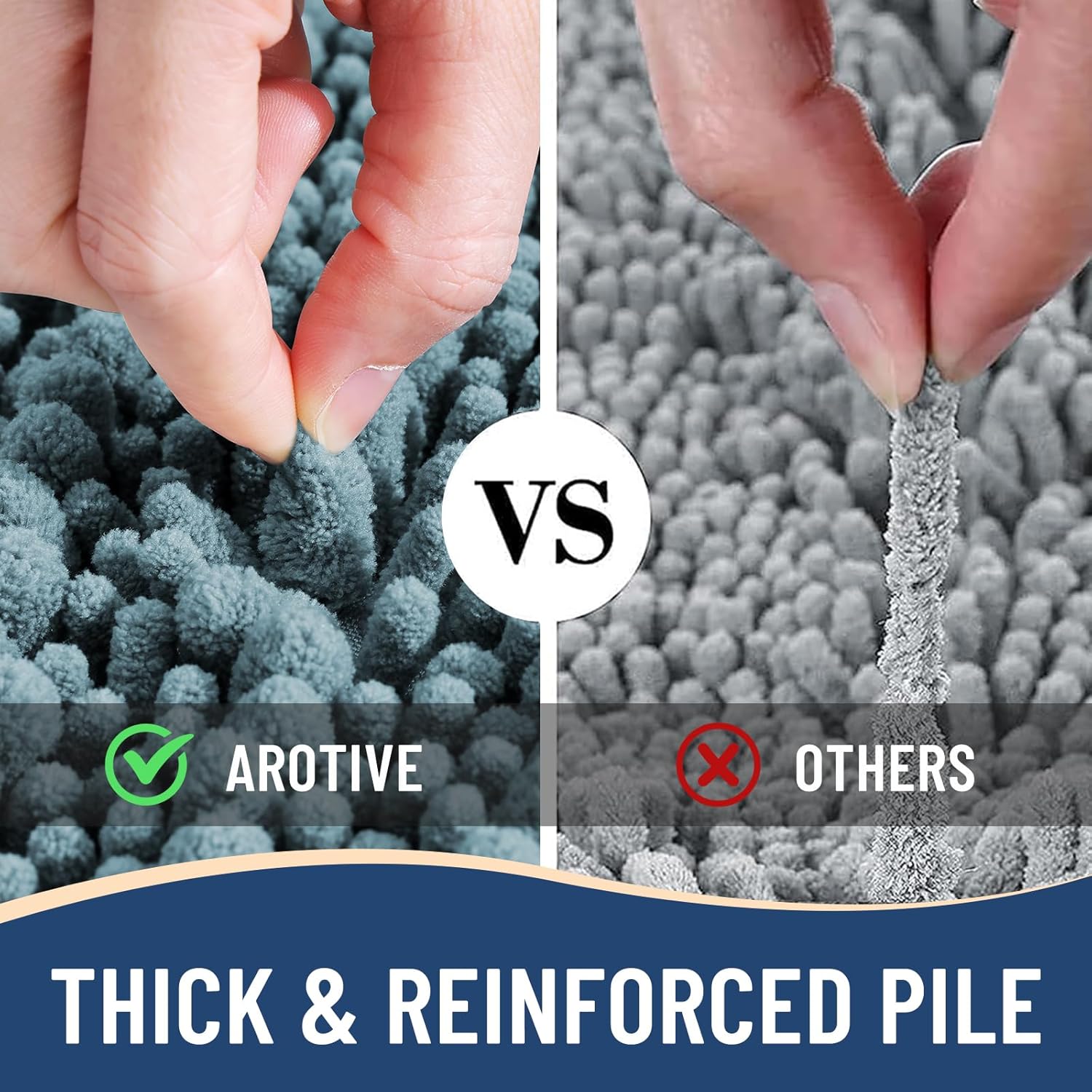- Anti-Skid Backing: Arotive chenille bathroom rugs feature a non-slip bottom consisting of sturdy mesh PVC material that stops the bath mat from shifting and skidding. The middle layer is 4 mm memory foam, which can let you feel more comfortable when wrapping into the rugs. WARNING: Place bath mat on CLEAN DRY FLAT FLOOR ONLY. Water under bath rug can cause it to slip. Always keep the bottom of bath rug dry
