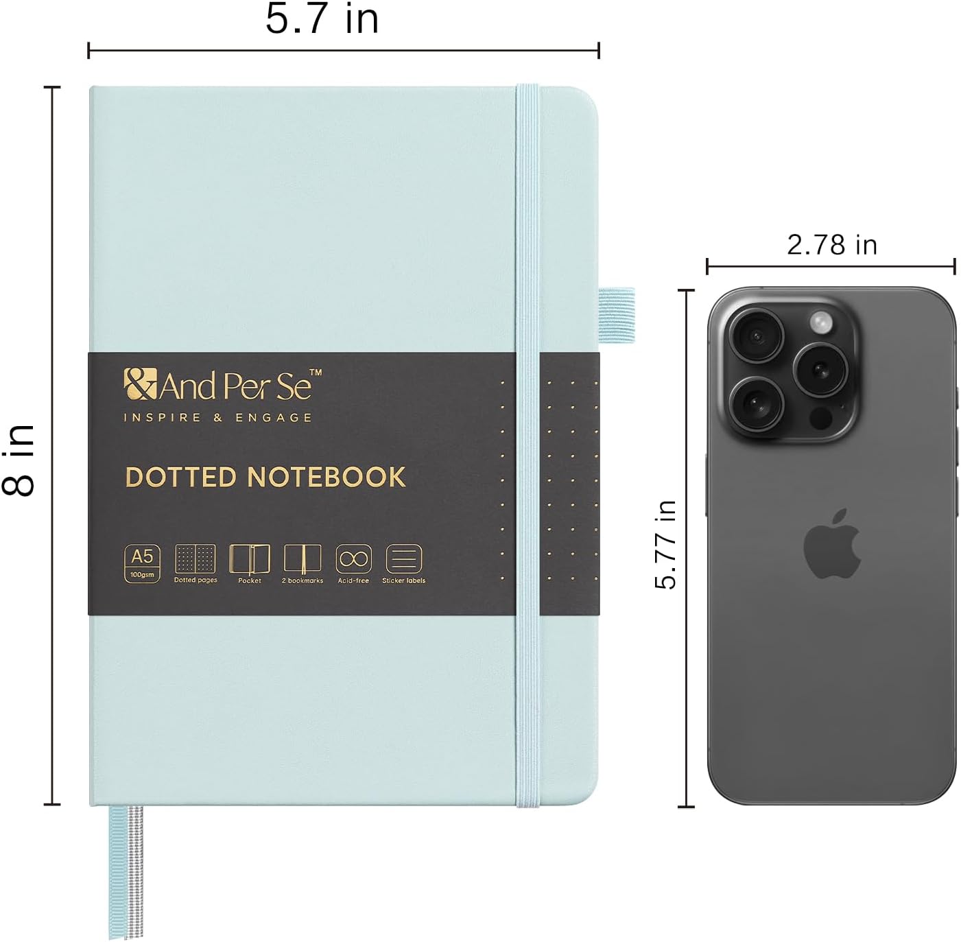 &And Per Se Dotted Journal Notebook (5 Packs), A5 Hardcover Leather Dotted Journal, 160 Pages 100 gsm Thick Paper, 3 Sheets of Stickers Included- 5.7'' x 8'' (Cyan