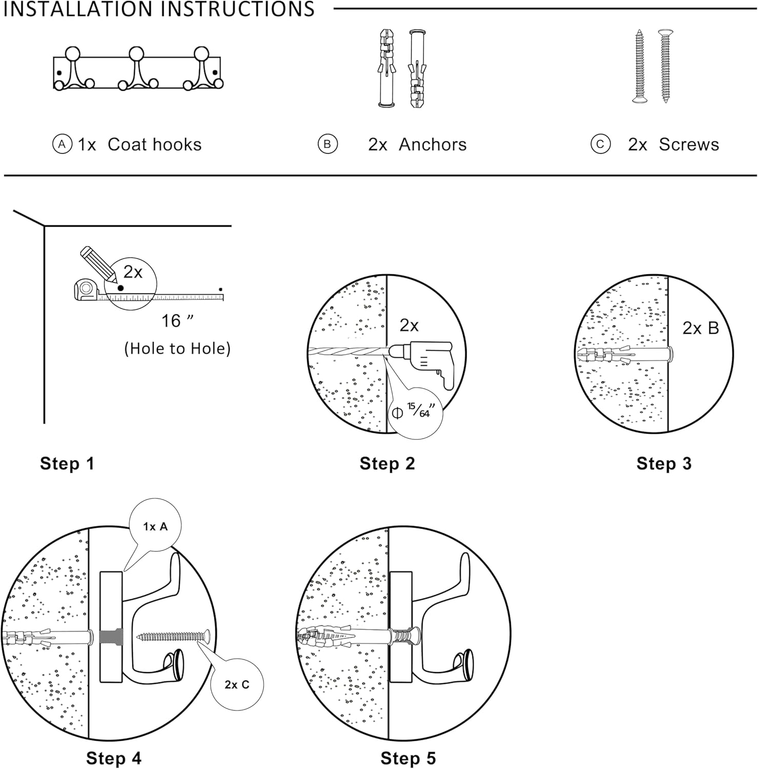 - 【Sturdiness & Large spacing】Solid wall mount coat rack with 3 triple hooks, hang 5 or 10 jackets per rack. Plenty of space to support clothes, bags, and pet supplies, making it perfect for family.