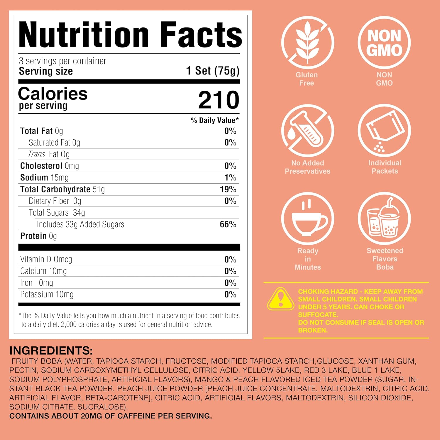 - Flavor : Mango Peach Black Tea with Fruity Boba