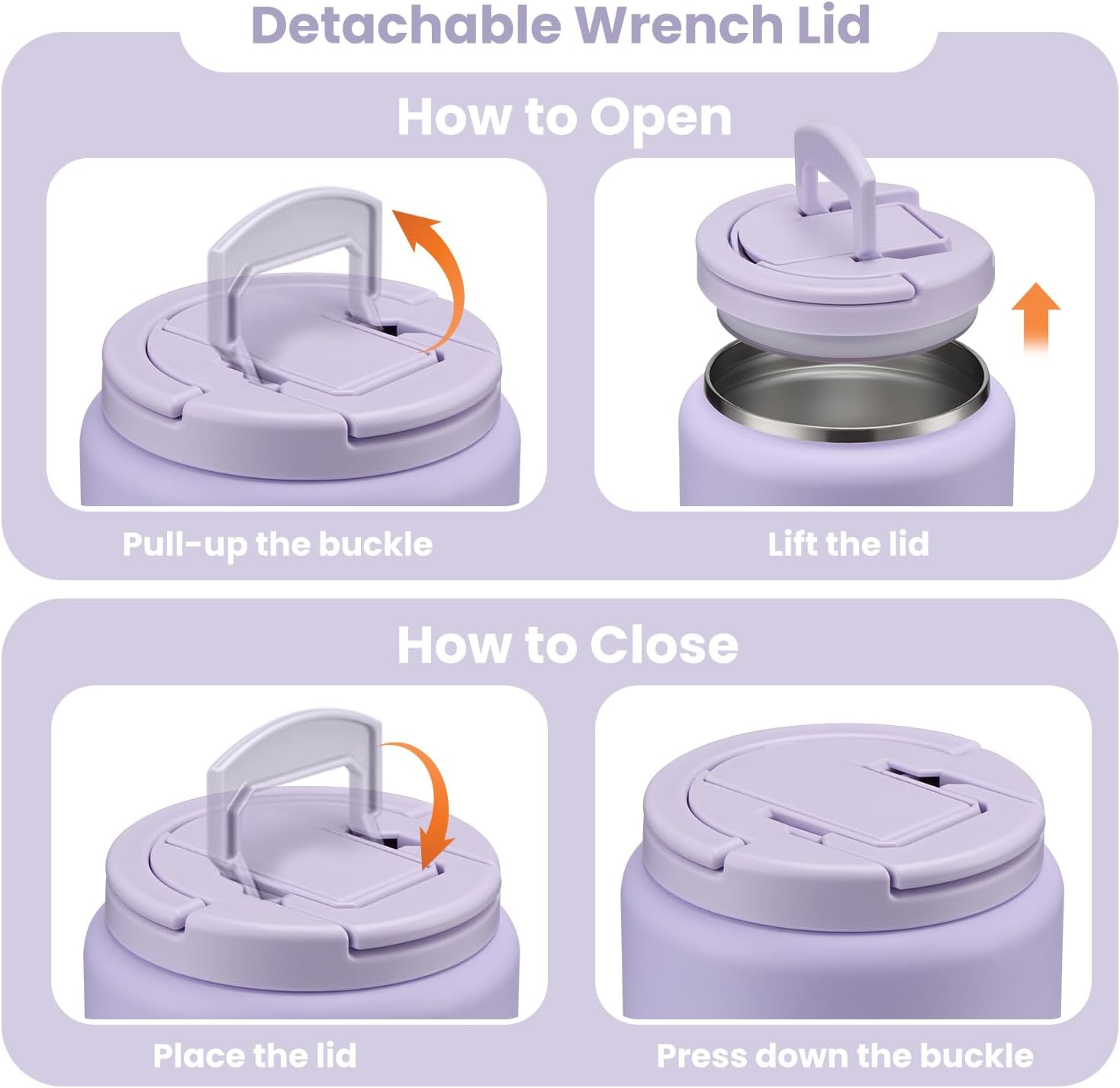 - New Buckle of Lid: The food containers feature a press-seal construction, allowing you to simply pull the handle upwards to 90° to open the lid/ 90° downward closure. This design is maintaining vacuum no need to rotate the lid open . Additionally, the container comes equipped with a carrying handle, making it convenient for your child to carry it. Whether at school, an outdoor outing, or a family gathering, this user-friendly design empowers children to confidently enjoy their delicious meals.