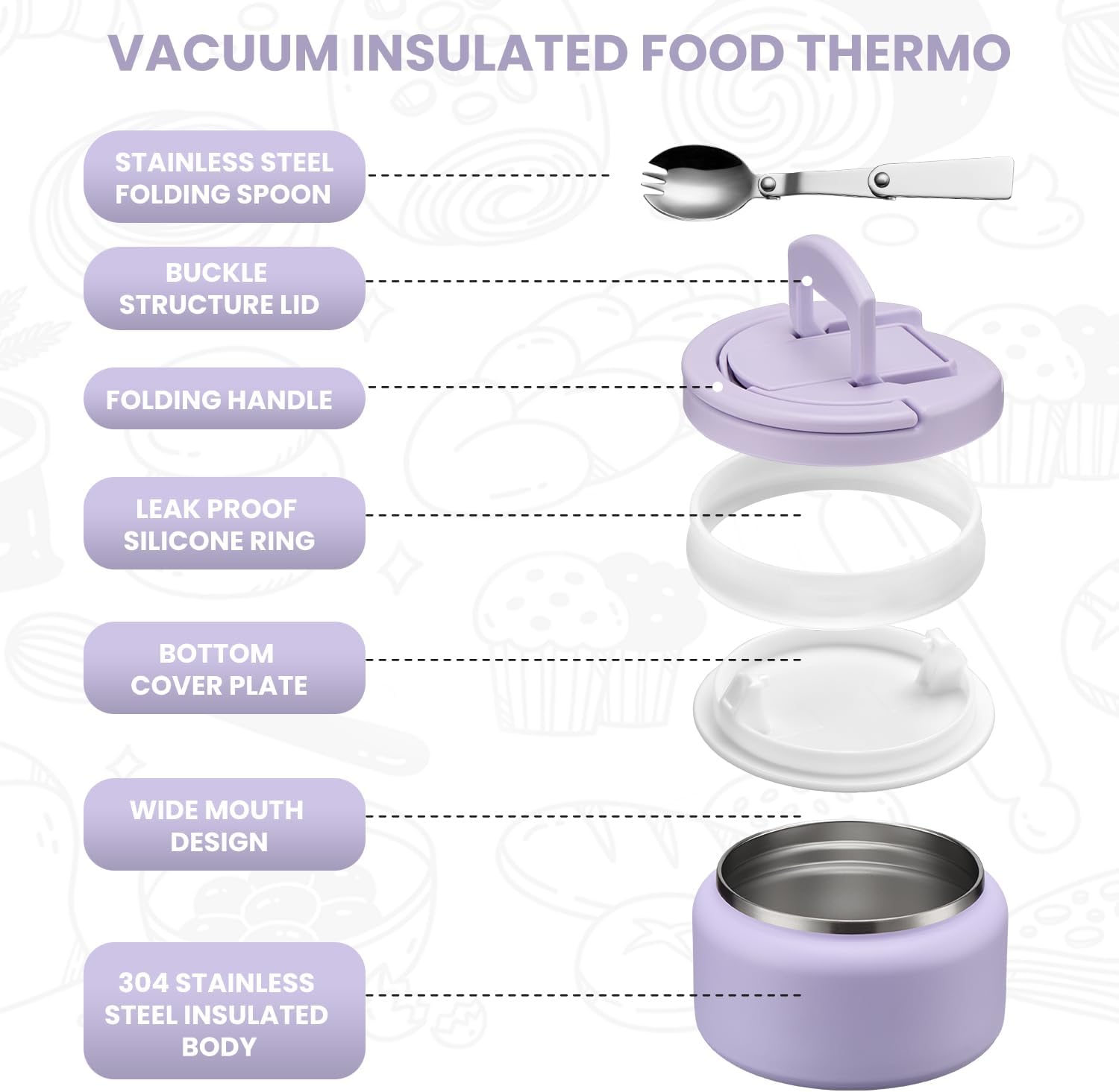 - Vacuum Insulation Jar: The interior of the food thermo is entirely constructed from food-grade double-wall vacuum insulated 304 stainless steel, boasting heat resistance insulation technology that maintains food’s temperature—keeping it hot for 6 hours or cold for 8 hours. Wherever you are at lunchtime, enjoy warm meals and soups!
