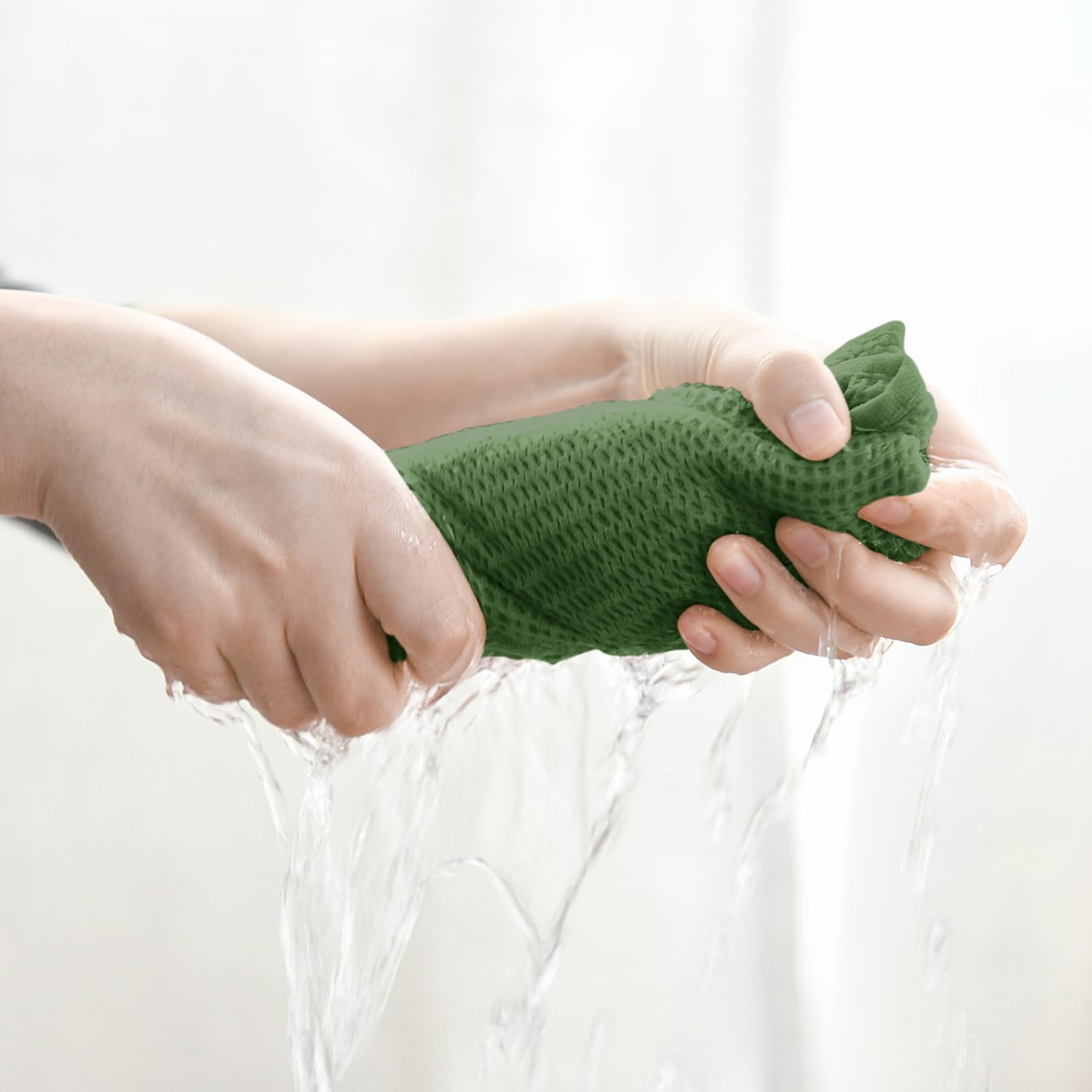 Artoid Mode 100% Cotton Olive Green Waffle Weave Kitchen Dish Cloths, 13x28 Inch Ultra Soft Absorbent Quick Drying Kitchen Dish Towels Set of 4