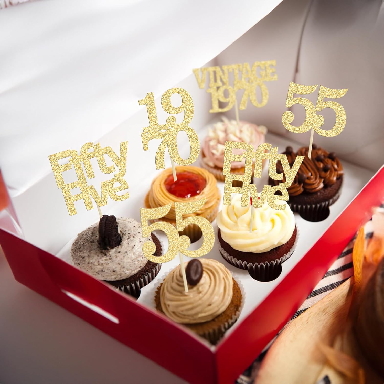 - Package included: 24Pcs 55th Birthday Cupcake Toppers. Comes with assembled, so you can insert into your cake directly, which make your cake more interesting.