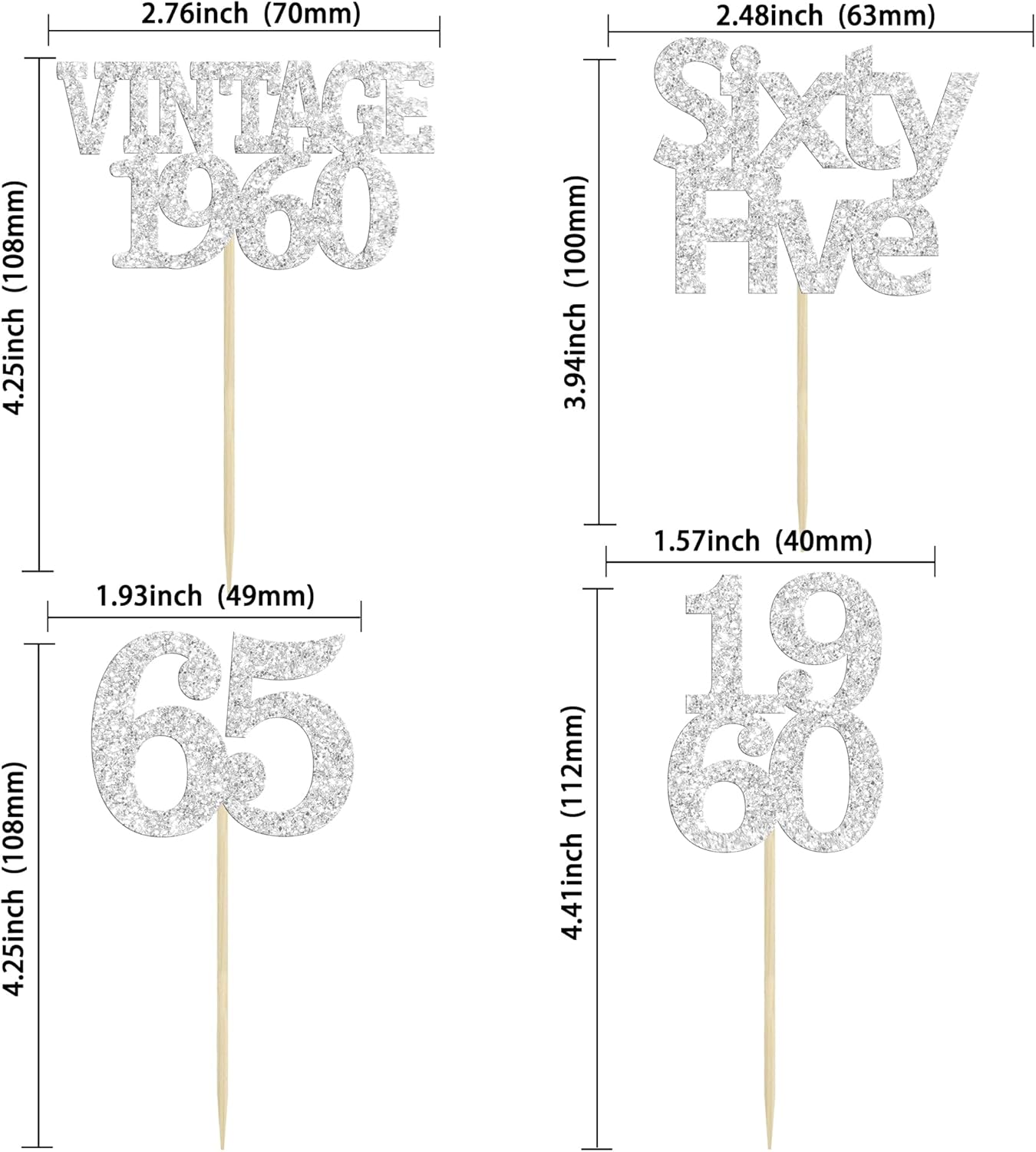 Gyufise 24Pcs 65th Birthday Cupcake Toppers Glitter Cheers to 65 Fabulous Sixty Five Vintage 1960 Cupcake Picks 65th Birthday Wedding Anniversary Party Cake Decorations Supplies Silver