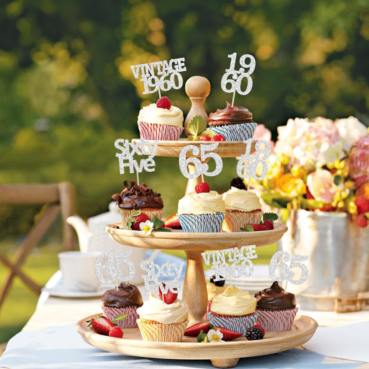 - Package included: 24Pcs 65th Birthday Cupcake Toppers. Comes with assembled, so you can insert into your cake directly, which make your cake more interesting.