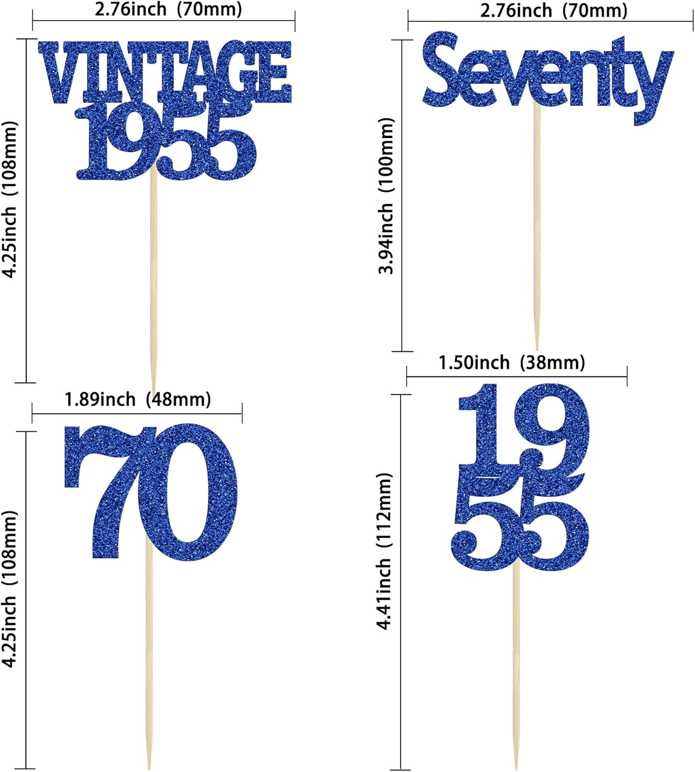 Gyufise 24Pcs Vintage 1955 Cupcake Toppers Glitter Cheers to 70 Fabulous Seventy Cupcake Picks 70th Birthday Wedding Anniversary Party Cake Decorations Supplies Deep Blue