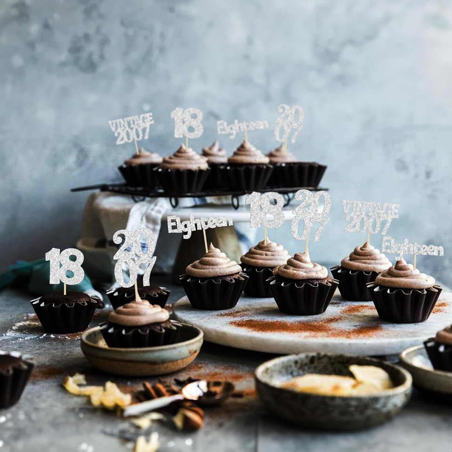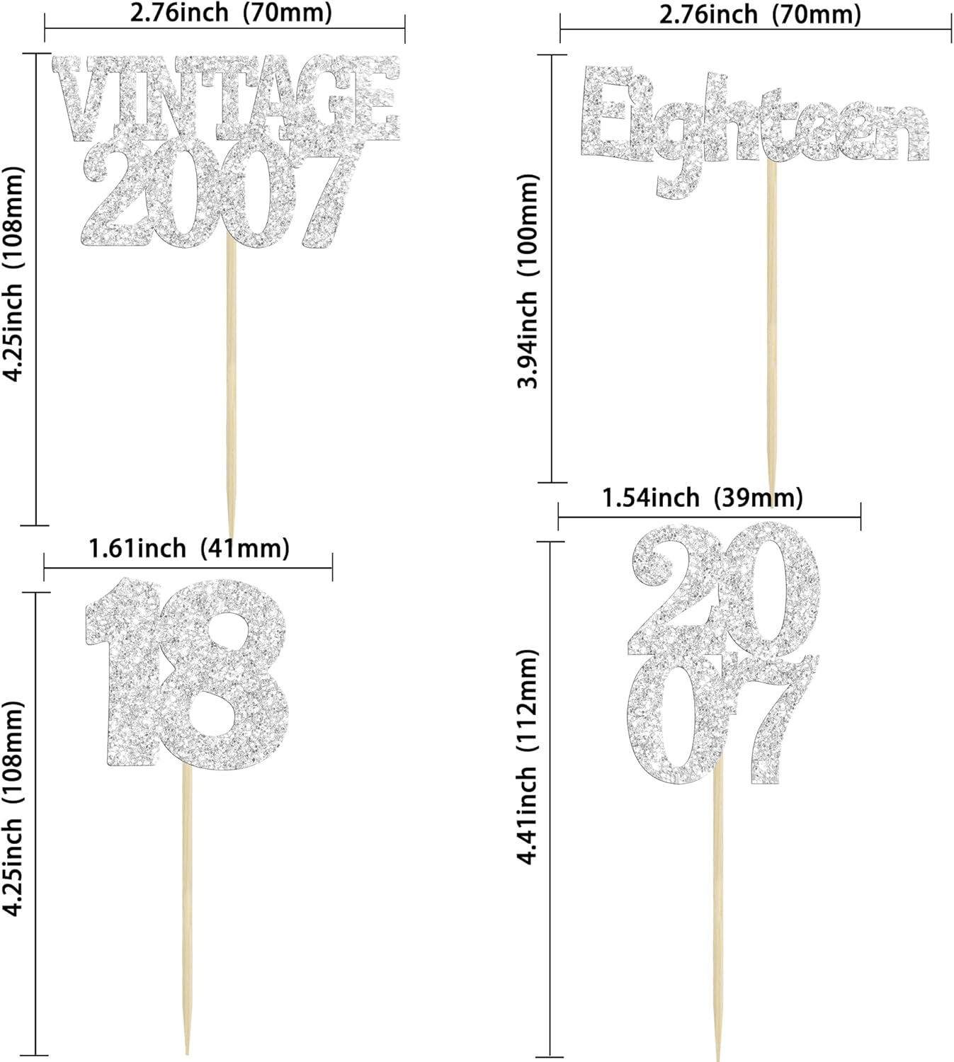 Gyufise 24Pcs 18th Birthday Cupcake Toppers Glitter Eighteen Vintage 2007 Hello 18 Years Birthday Cupcake Picks Adultish 18 Cake Decorations for Happy 18th Birthday Anniversary Party Supplies Silver
