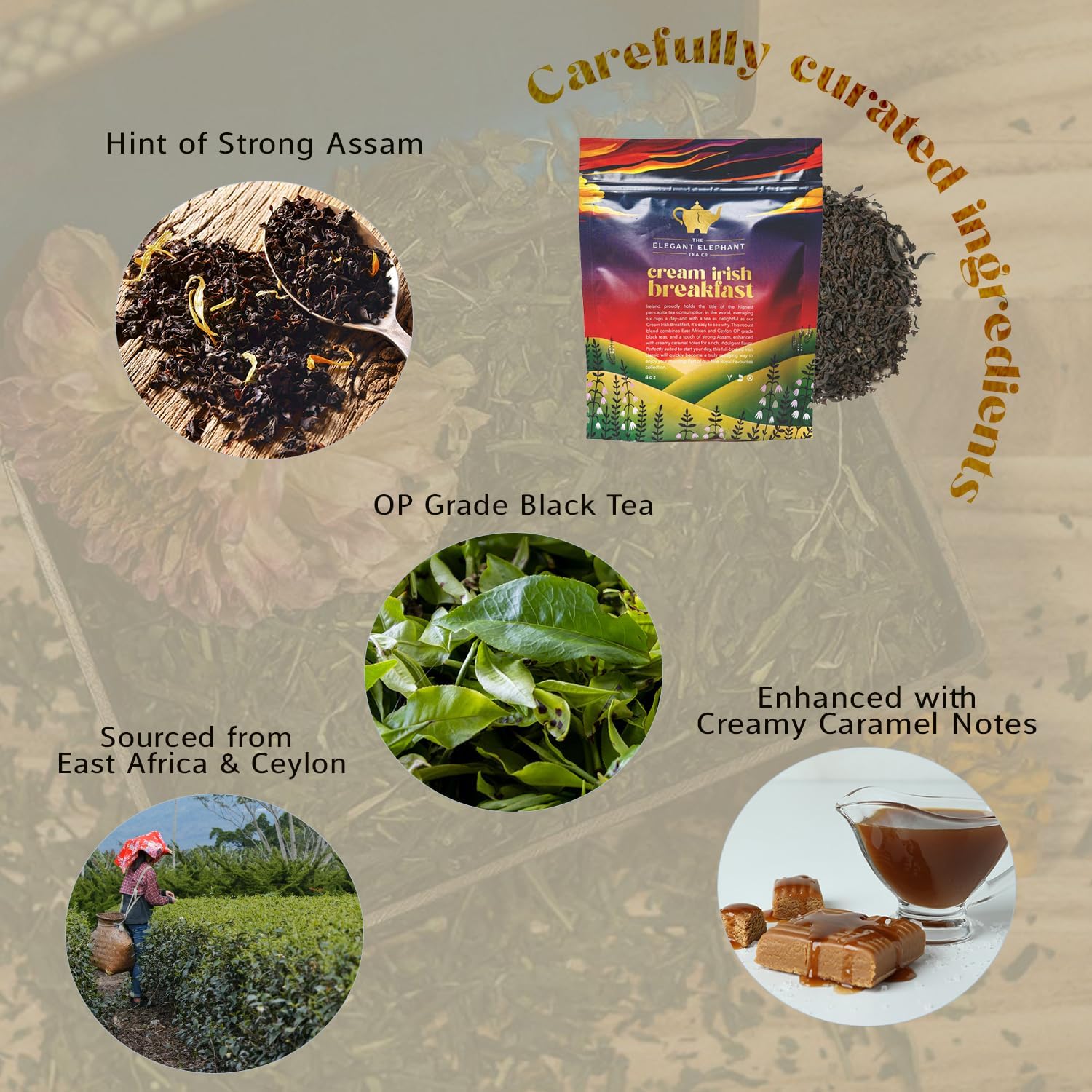 Cream Irish Breakfast Tea, Loose Leaf Black Tea – Irish Classic with Caramel & Strong Assam – Robust, Full-Bodied – Drink Hot or Iced – 4 oz Resealable Bag (Makes 50 Cups) – The Elegant Elephant