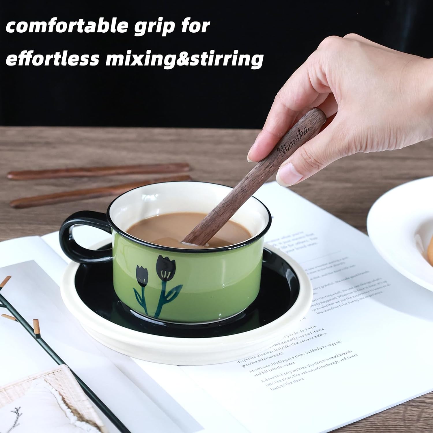 - Ergonomic Design — Hand-polished to a smooth finish with natural wood grain texture, this stirring stick provides a comfortable grip and effortless mixing. Gentle on cups and glassware without scratching or producing harsh noises during use.