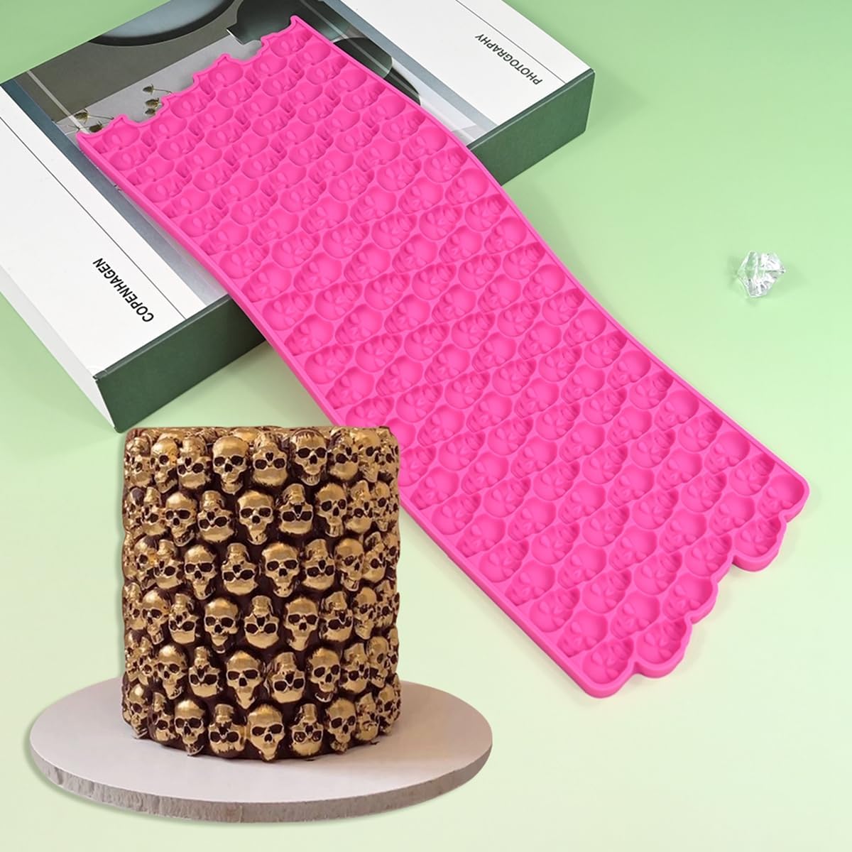 mostsom Silicone Mold 3D Hollow Out Lace Molds 3D Skull Cake Lace Mat Halloween Silicone Mould Fondant Mold Chocolate Stencil Cake Decorating Border Bakeware (K_ Skull Shape)