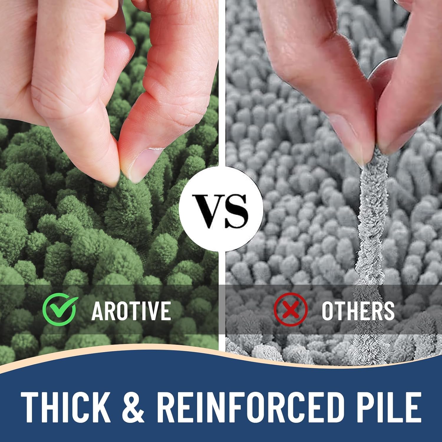 - Anti-Skid Backing: Arotive chenille bathroom rugs feature a non-slip bottom consisting of sturdy mesh PVC material that stops the bath mat from shifting and skidding. The middle layer is 4 mm memory foam, which can let you feel more comfortable when wrapping into the rugs. WARNING: Place bath mat on CLEAN DRY FLAT FLOOR ONLY. Water under bath rug can cause it to slip. Always keep the bottom of bath rug dry