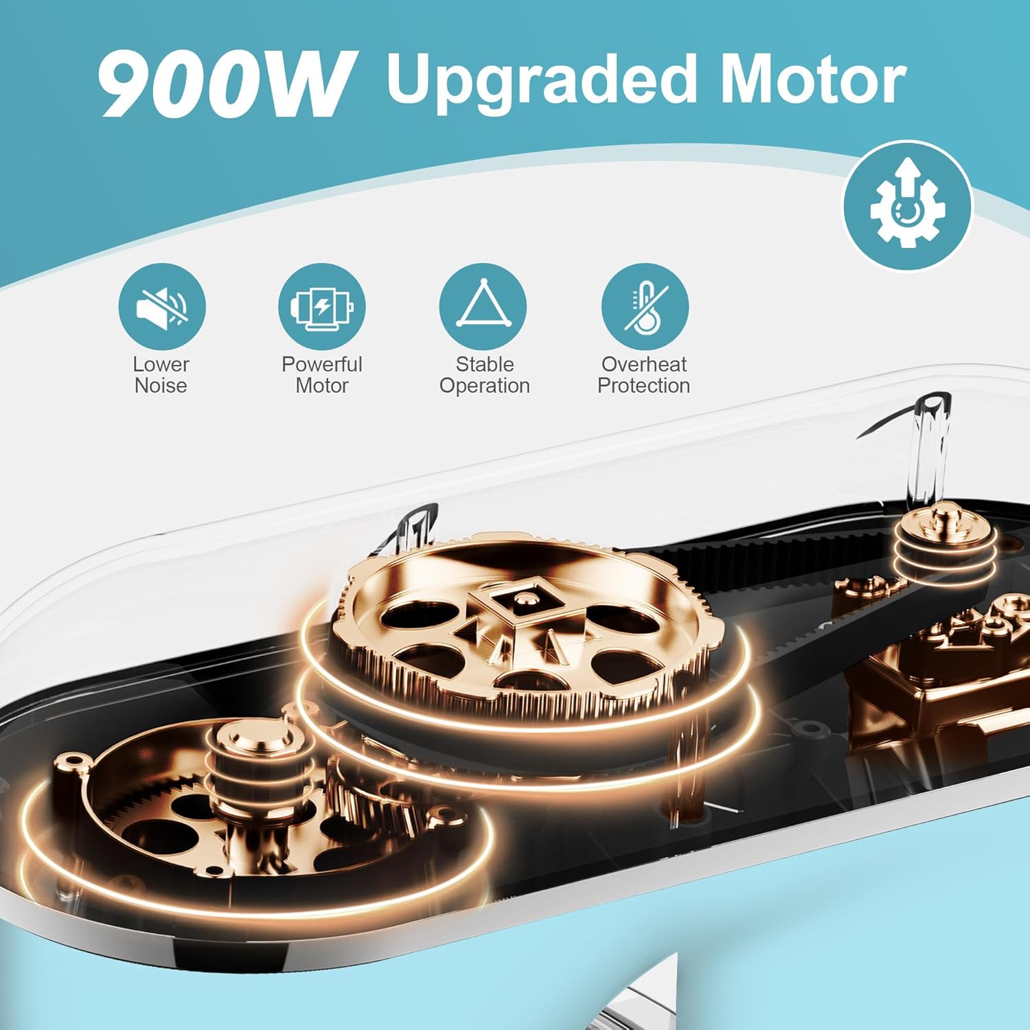 - Powerful 900W Motor-The 900W motor delivers exceptional power, effortlessly tackling thick dough, dense batters, and delicate mixtures. With smooth and consistent mixing performance, this powerful motor ensures that the stand mixer can handle even the most demanding tasks without overheating, offering long-term reliability and efficiency.