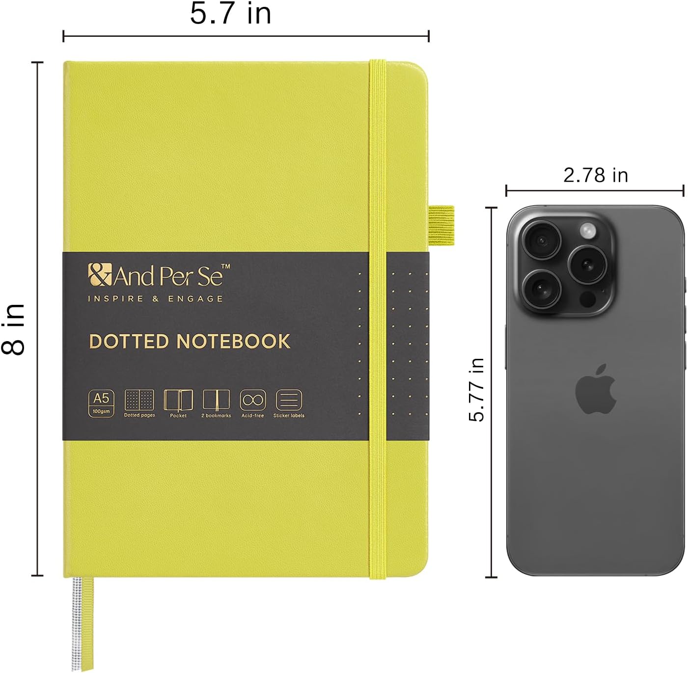 &And Per Se Dotted Journal Notebook, A5 Hardcover Bullet Dotted Journal, 160 Pages 100 gsm Thick Dotted Paper, 3 Sheets of Stickers Included - 5.7'' x 8''(Emerald)