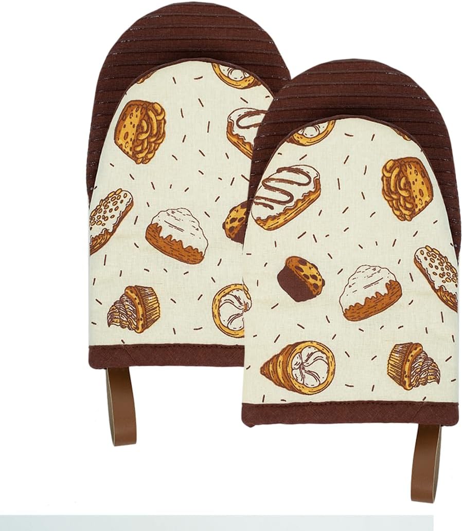 Folkulture Mini Oven Mitts Heat Resistant | (5.75 x 9) Set of 2 Short Oven Mitts with Hanging Loop | 100% Cotton Oven Gloves or Kitchen Mittens | Small Silicone Oven Mits or Baking Accesories