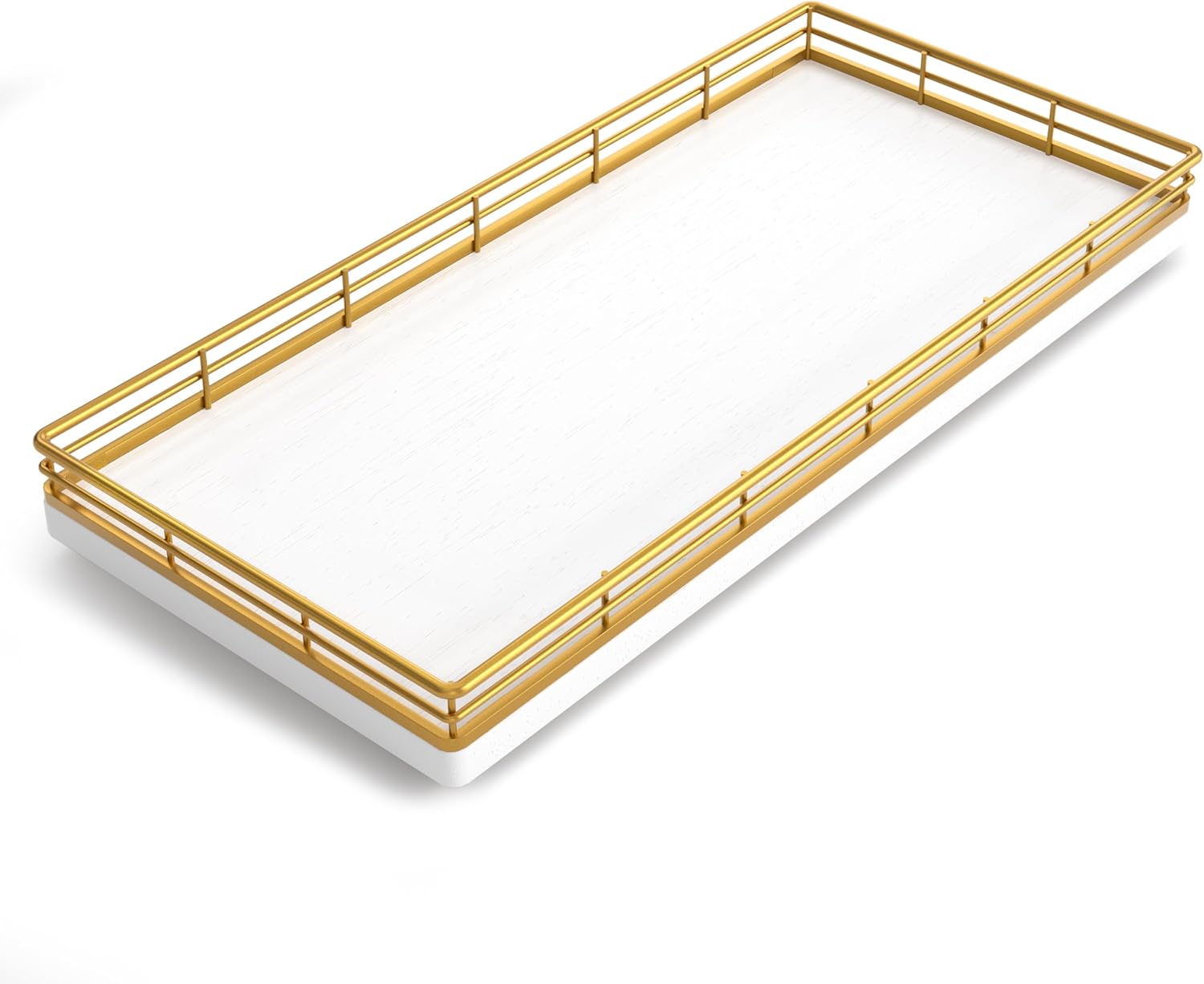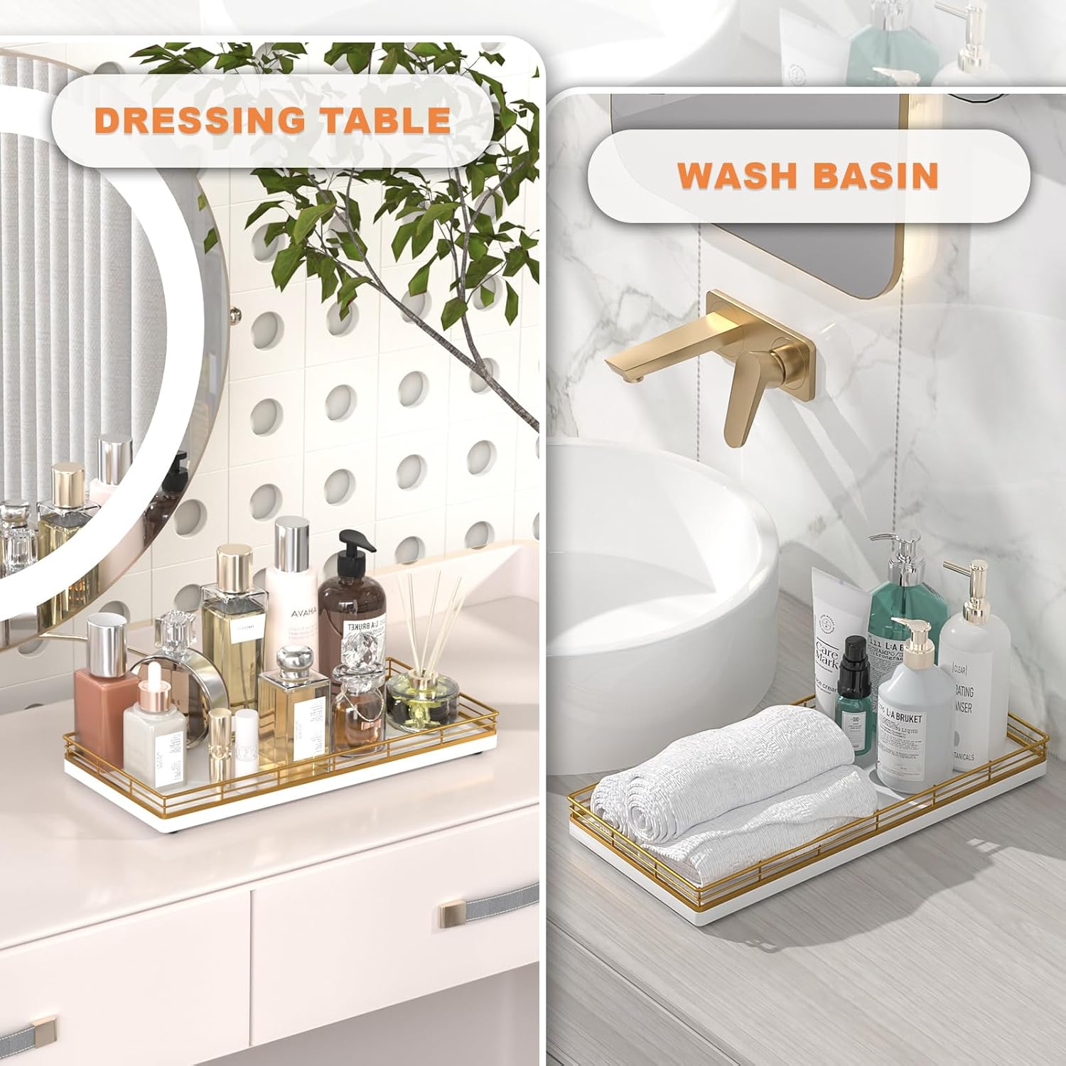 - Considerate Design: This bathroom trays for counter is ready to use without any installation required; Upgraded embedded welding design enhances stability and aesthetics; Raised edge prevent items from slipping; 4 non-slip pads on the bottom protect surfaces from scratches; Simplify your cleaning routine with just a quick wipe-down using a damp cloth, saving you time and hassle
