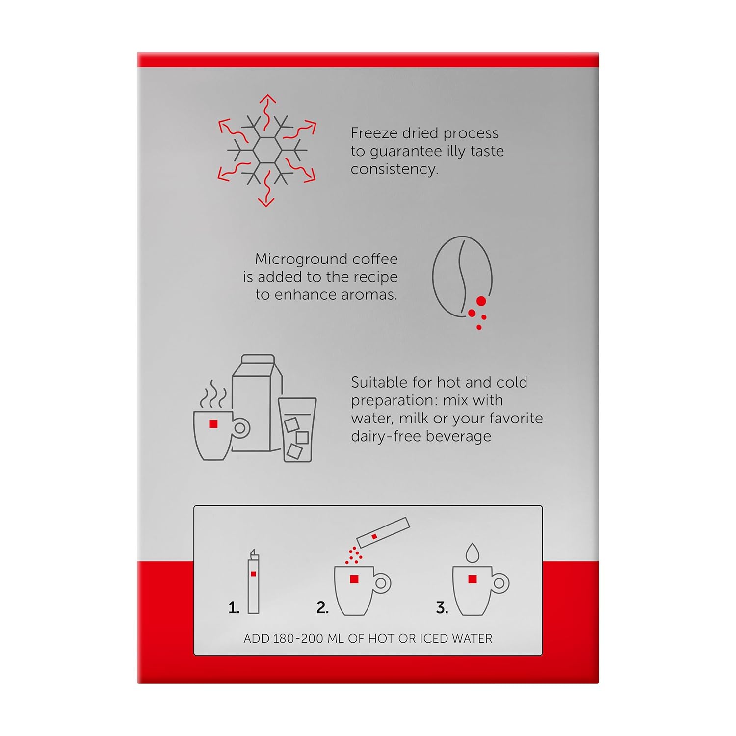 - QUICK & EASY PREPARATION - Simply empty one 2g packet into your cup, add hot (not boiling) water, stir and enjoy perfect illy coffee in seconds - ideal for travel, office, or on-the-go.