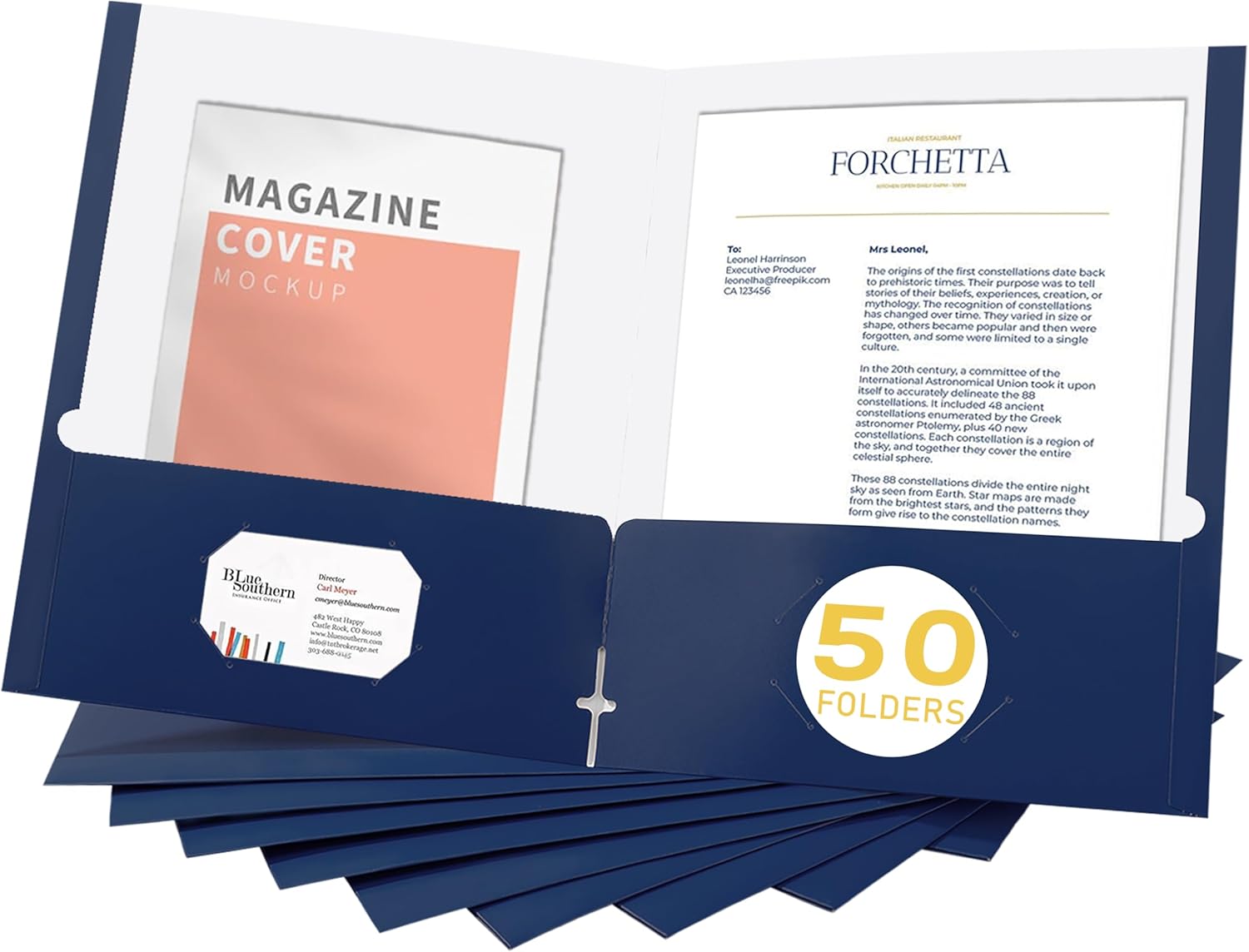 - PACKAGE INCLUDES: 50 packs old blue file folders with 2 pocket folders and 2 business card slot, 100 plus Sheet Capacity, enough use for you, perfect for school, paperwork, office, business.