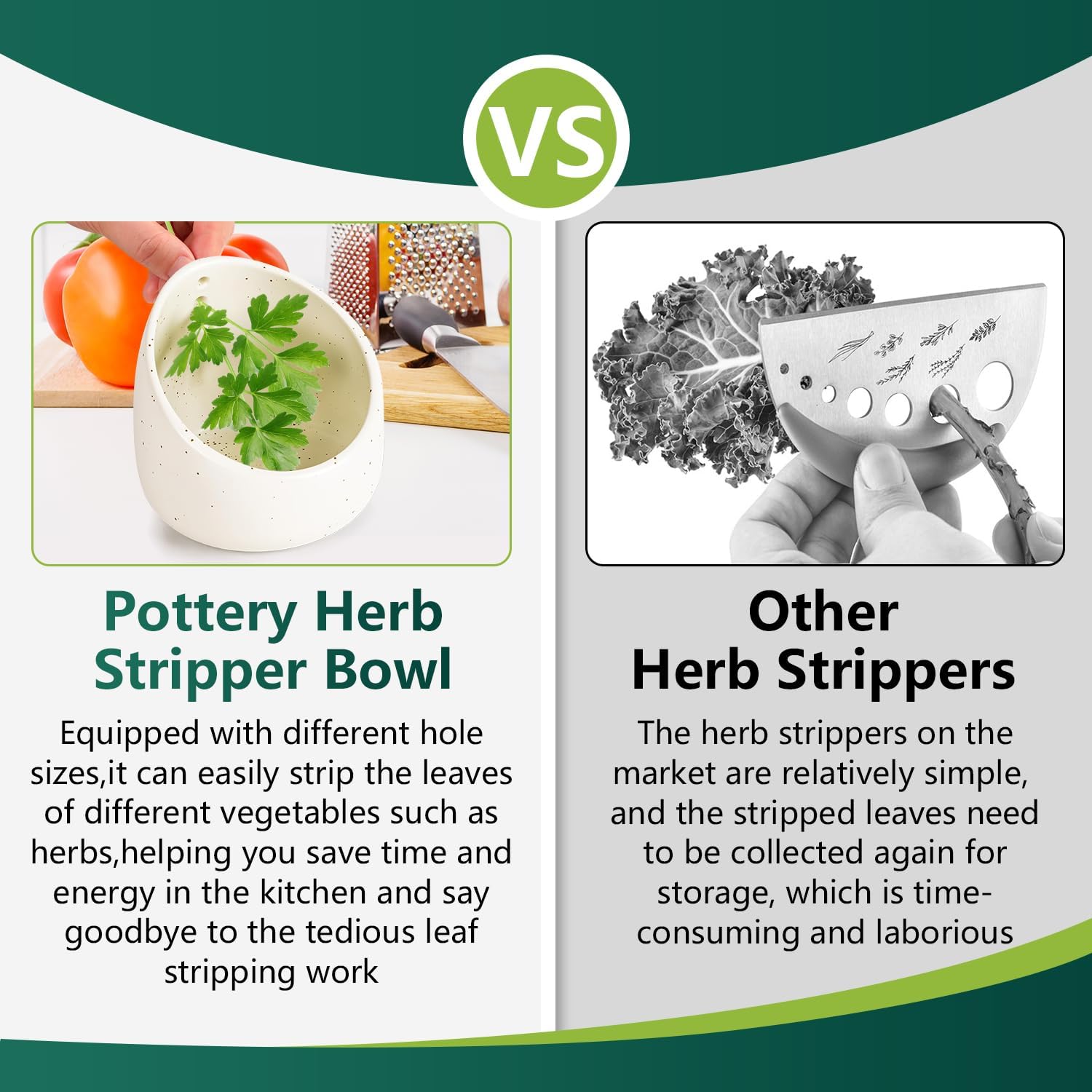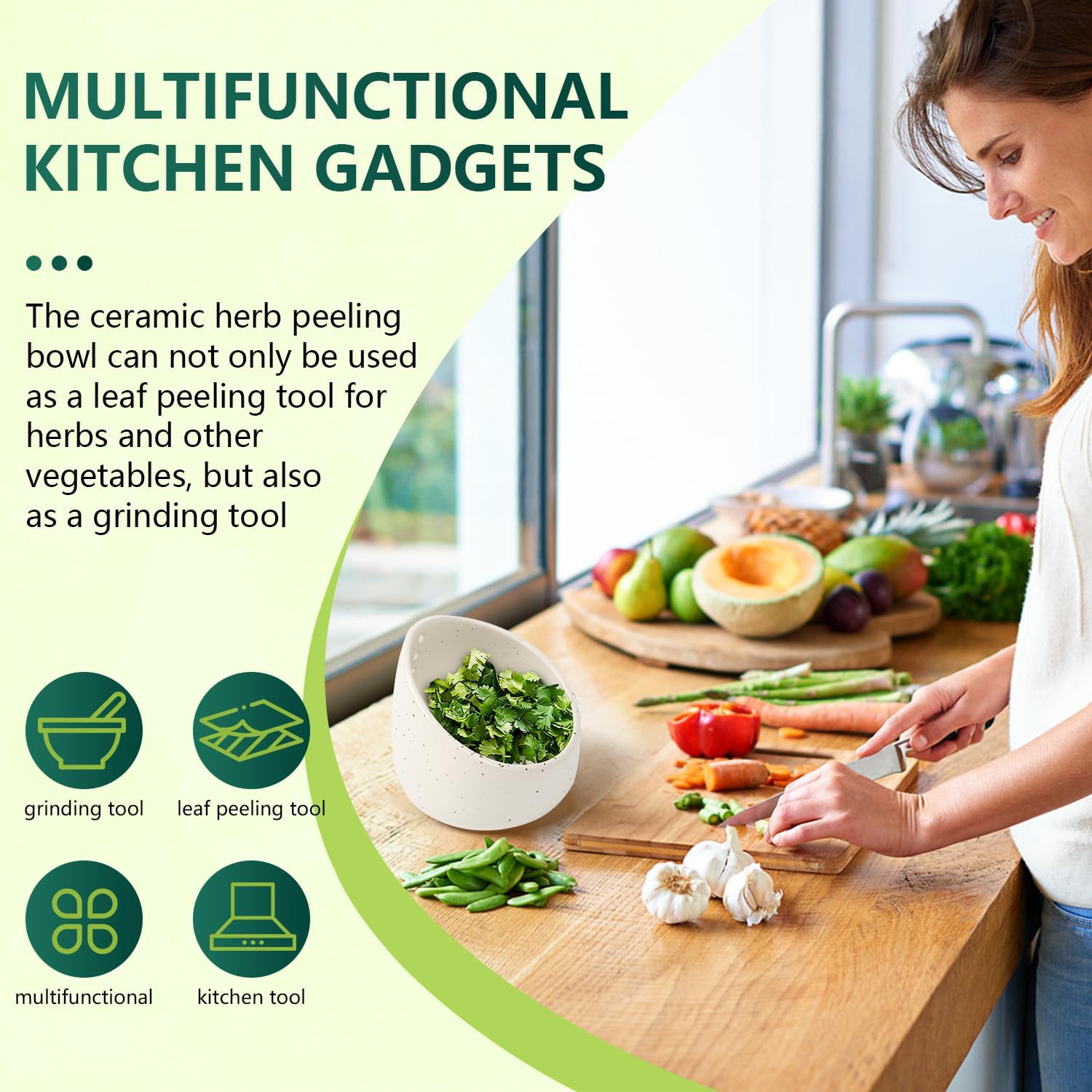 - 【Quickly Peel Leaves】This ceramic herb peeling bowl, with different sizes of apertures, can easily peel the leaves of different vegetables such as herbs, helping you save time and energy in the kitchen and say goodbye to tedious leaf peeling work