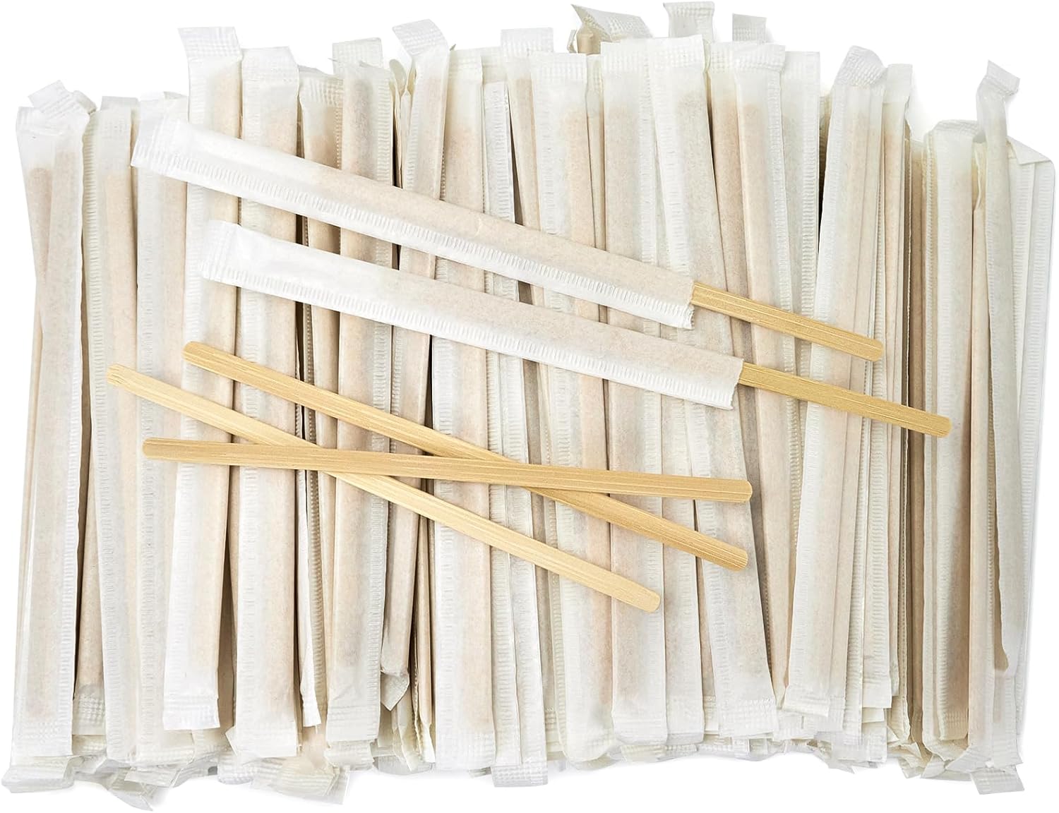 Bamboo Coffee Stirrers Individually Wrapped 500 Count, 7 inch Coffee Stir Sticks - For Hot Drinks and Cocktails, Smooth End, Disposable and Travel-Friendly