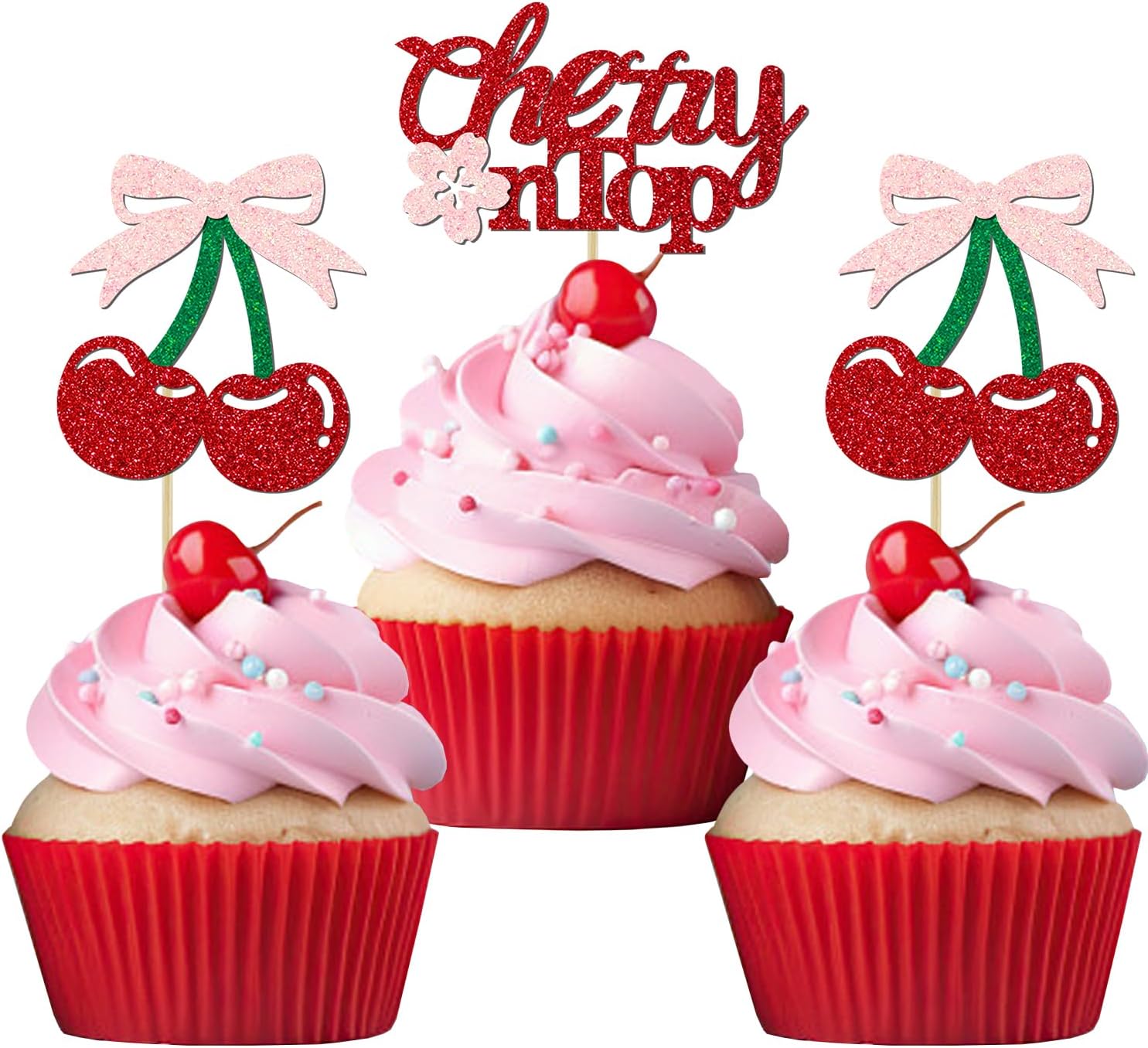 - 【Cherry Cake Topper】:These sparkling and cute cake decorations are excellent accessory for cherry or fruits party. The topper features a unique cherry design with a charming bow and delicate cherry blossoms, adding extra sparkle and cuteness. These cherry cake toppers will make your cake more attractive and everyone will love it! It's also a great photo prop to make your party more fun!