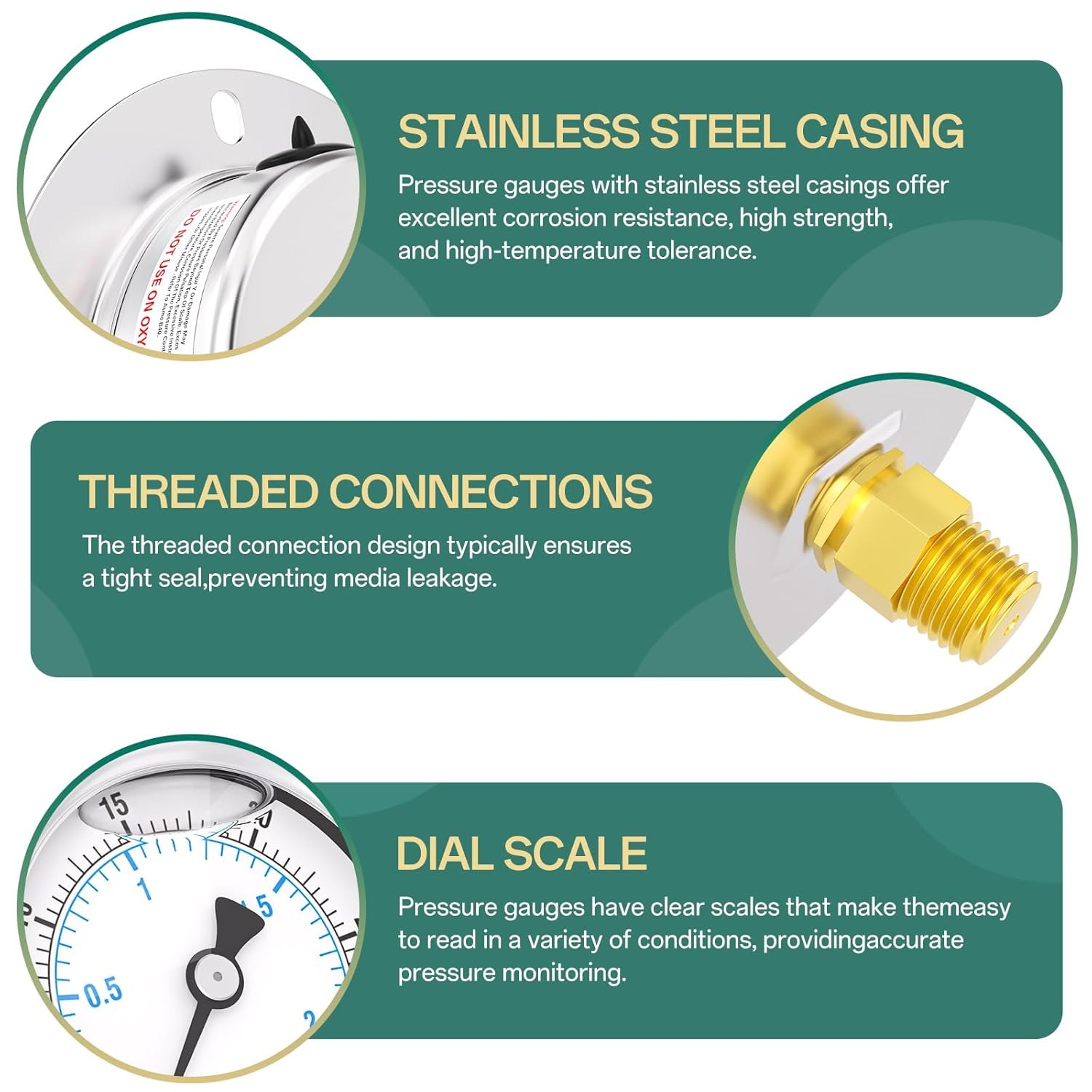 - [SIZE] 2.5" dial size, 1/4" MNPT Back Mount