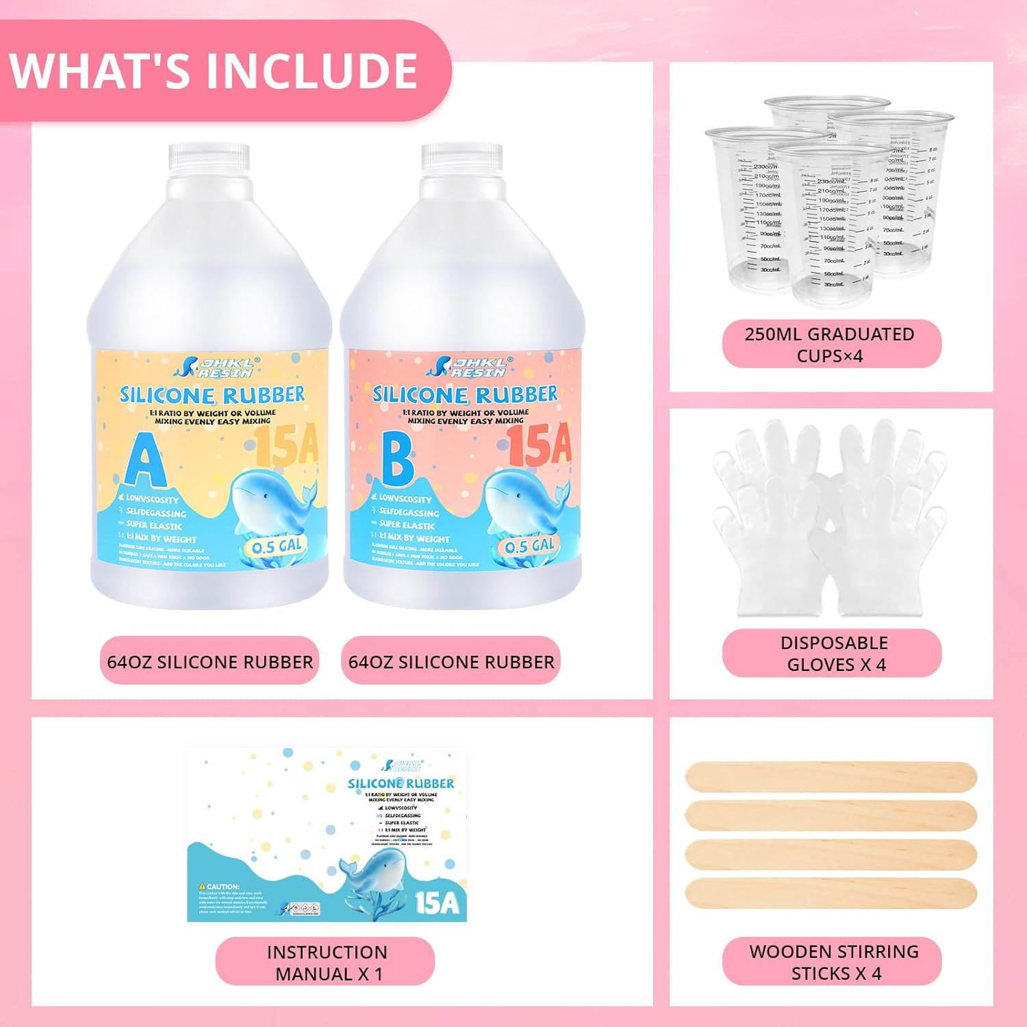 JHKL RESIN Silicone Mold Making Kit,1Gallon Platinum Liquid Silicone Rubber for Mold Maker,15A Silicone Molds,Mix Ratio 1:1 Silicone Rubber Mold Making Kit, Ideal for Casting 3D Resin Molds