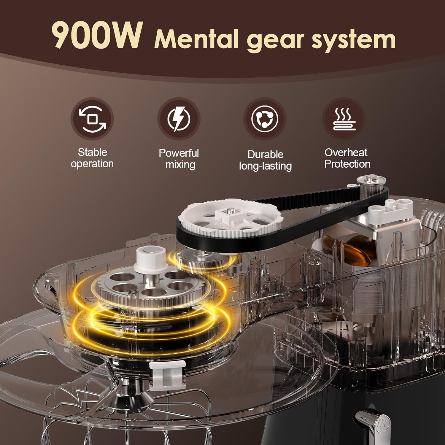 - Powerful Motor - 900W upgraded high speed motor, faster completion of various cooking, more even and full mixing. Long-term rotation without getting hot, extending the life of the electric stand mixer and improving safety.