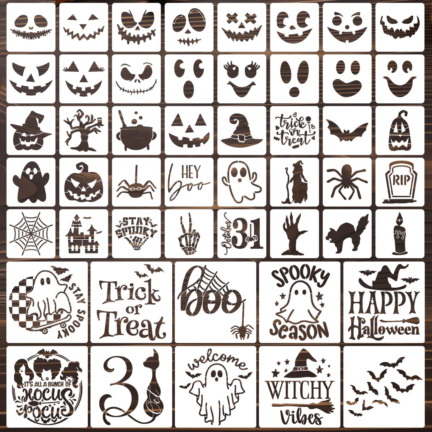 - Halloween Stencils:Rich patterns include pumpkin face,ghost face,spider,bats,trick or treat,spooky,skeleton,witch,etc.Make a great addition to your spooky season projects.