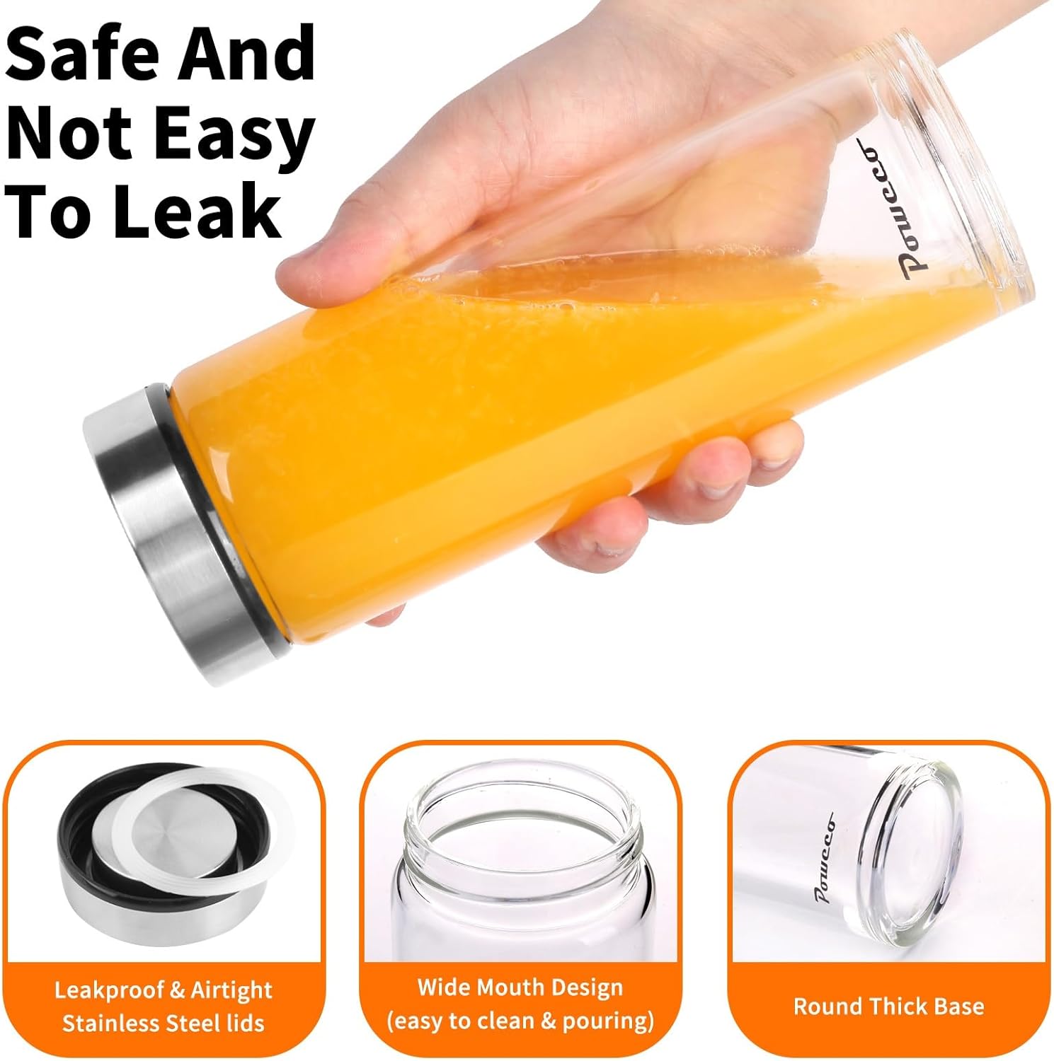 - 5. Built to Last: Made with high-quality borosilicate glass and durable, leak-proof stainless steel lids, our bottles are designed to withstand daily use. Ideal for storing juice made from your juicer, these bottles deliver lasting performance and style. Upgrade your juicing and beverage experience with our premium glass juice bottles today!