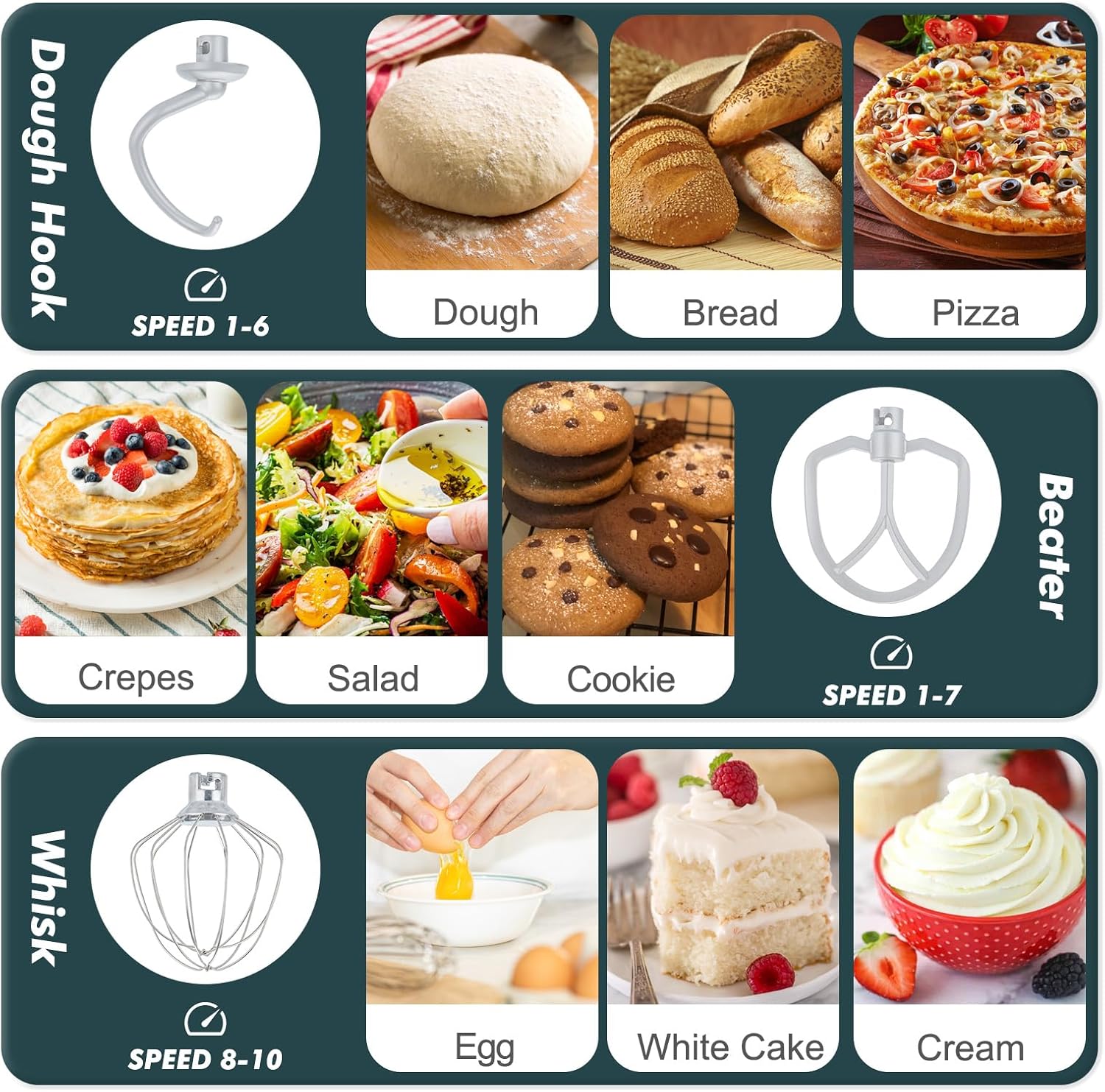 - ă10-Speed Power & Stable Mixingă Tackle any recipe confidently with 10 precise speeds. This small electric kitchen mixer can mix thick bread dough, whip cream, blend batters, or gently stir delicate ingredients â all with optimal control. 4 strong suction cups firmly anchor the compact stand mixer to your countertop, preventing wobbling or walking during use.